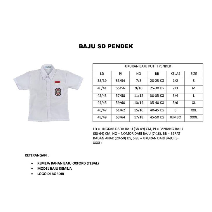 setelan seragam sekolah sd merah putih pendek panjang laki kelas 1-6 komplit