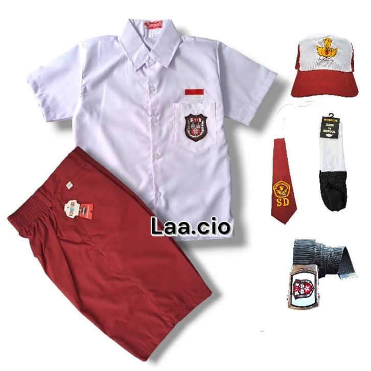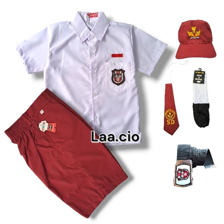 Seragam SD Merah Putih Laki Baju Pendek Celana Pendek Kelas 1-6 SD