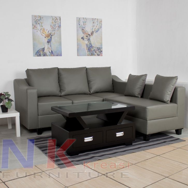 Sofa Kursi Tamu Minimalis ( Kulit Oscar ) + MEJA KAYU CANTIK