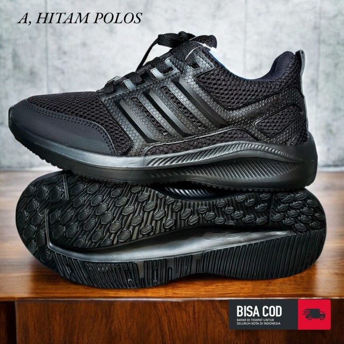 Sepatu Pria Hitam Polos Full Black Tebaru Sneakers Sekolah Jordon