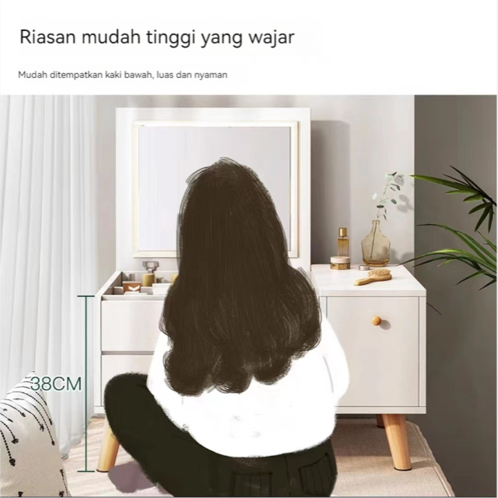 Meja Rias Lampu LED Meja Rias Rak kosmetik Meja Rias Aesthetic Mini Modern Meja Kosmetik