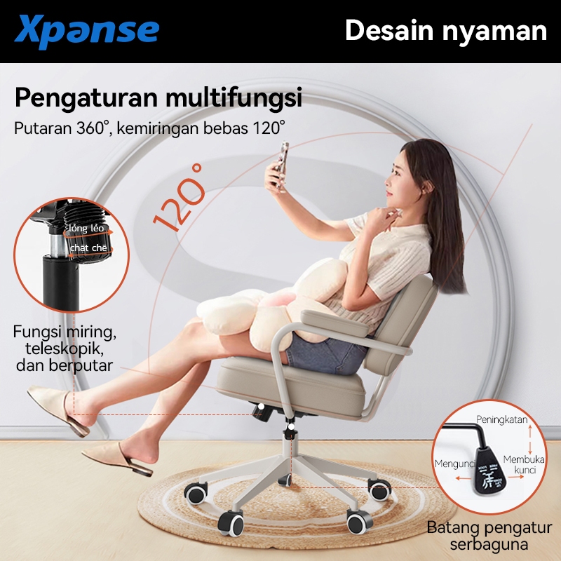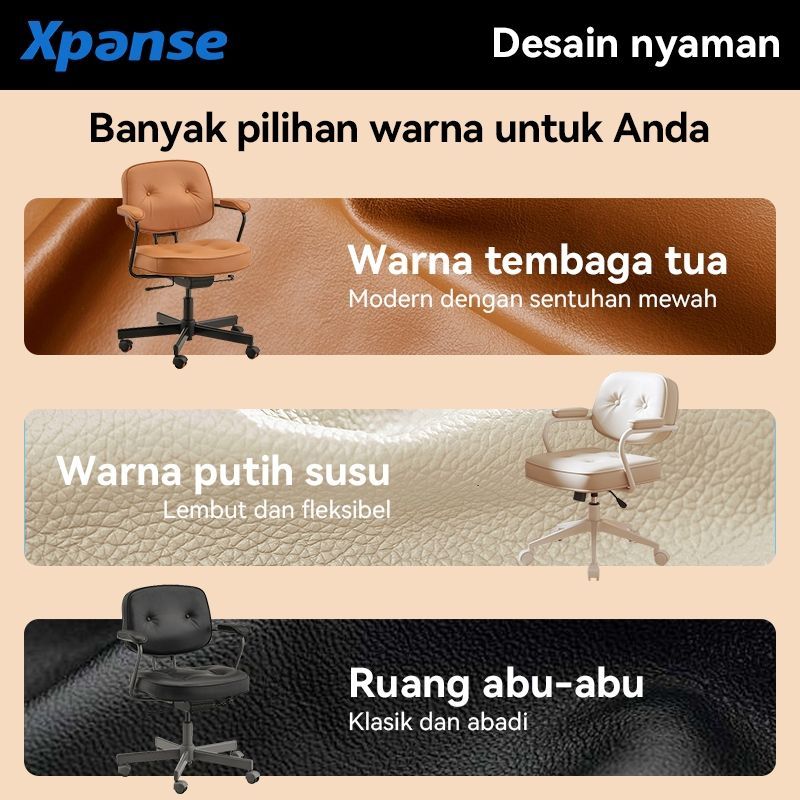 Kursi Kantor Kulit Sapi Retro Minimalis - Kursi Kerja/ Kursi Belajar/ Kursi Ruang Tamu Putar