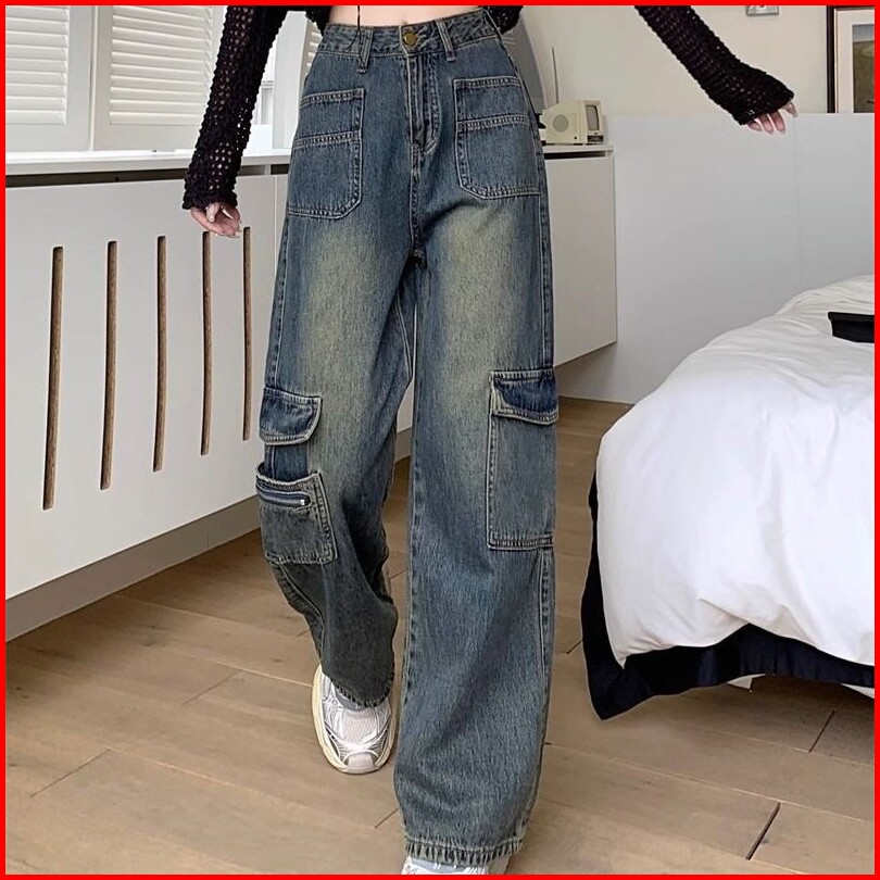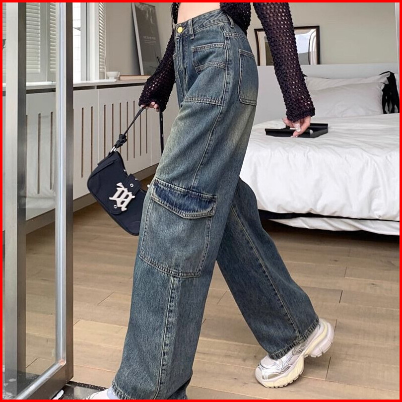 Celana Lebar Denim Biru Wanita Korean Minimalis