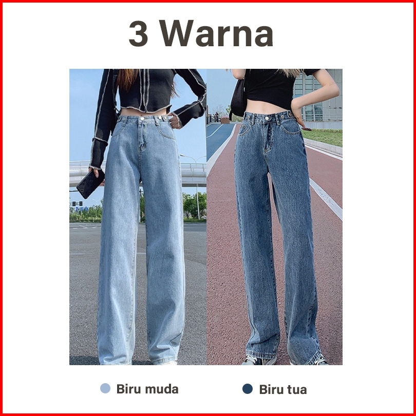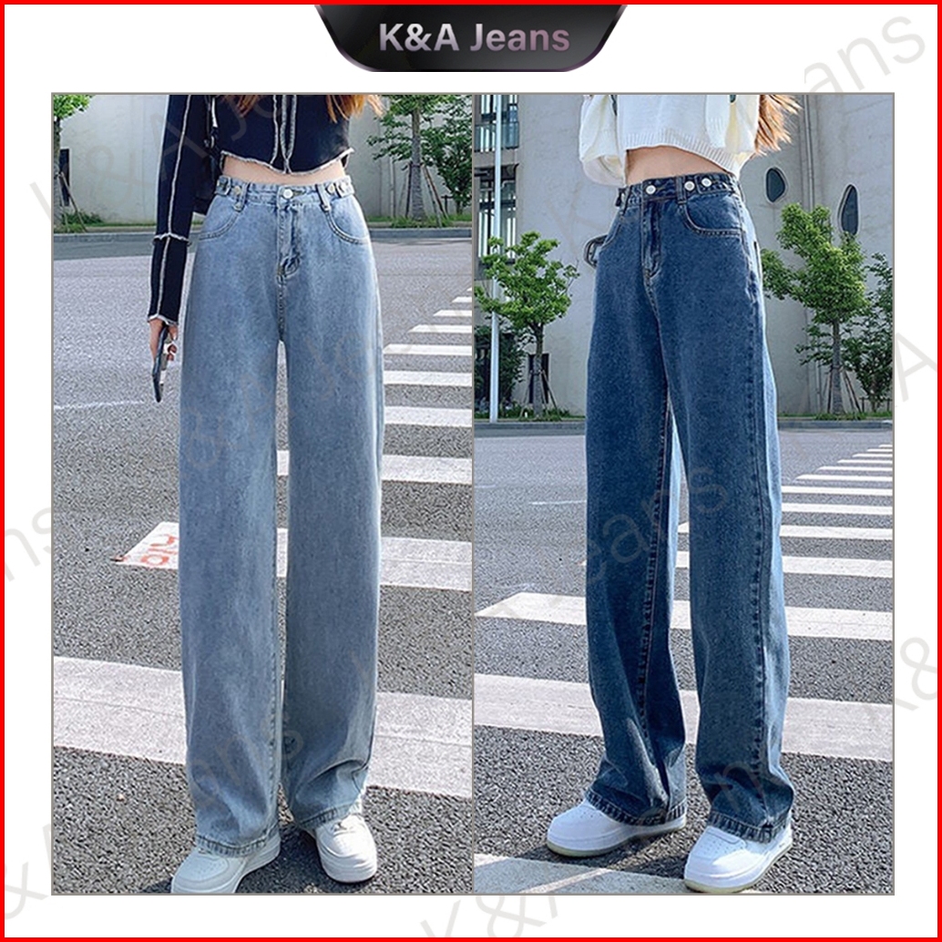 K A S-xl Adjustable Waist Jeans Kulot Jeans Loose Jeans Denim Jeans Celana Jeans Wanita Biru Muda Biru Tua Hitam Jeans