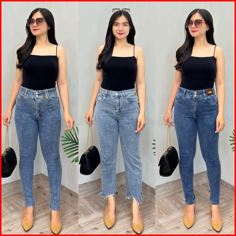 Celana Jeans Import Wanita Celana Panjang Jeans Wanita Skinny High Waist Premium Korean Style Bahan Stretch Elastis Hw H