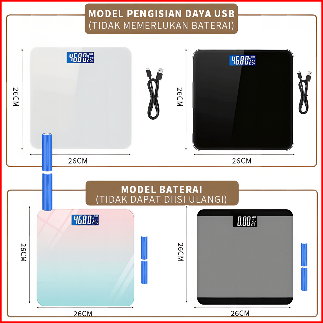 Puning Lentiven Timbangan Badan Kaca Digital Body Elektronik Kartun 180kg Usb Charging Anti Pecah Layar Lcd
