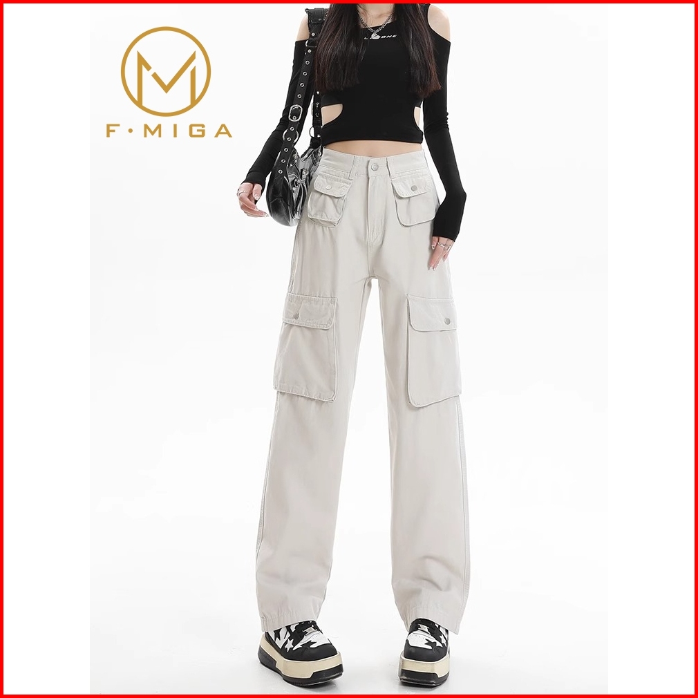 F Miga C113 Highwaist Cargo Celana Jeans Panjang Wanita Putih