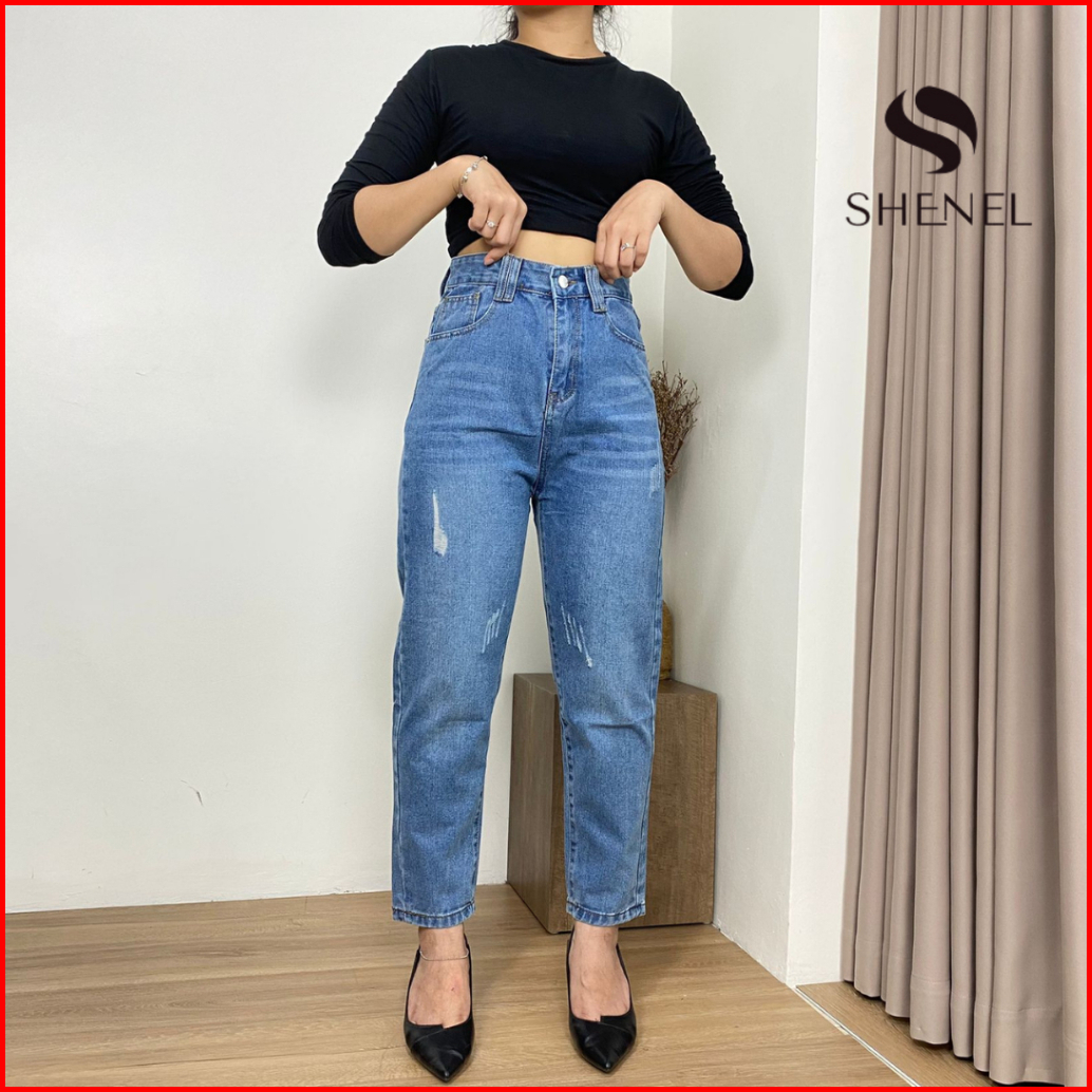 Shenel Shelin Boyfriend Jeans 1808 Celana Jeans Wanita Highwaist Import Jeans Baggy Ripped Jeans Retro Sobek Kekinian