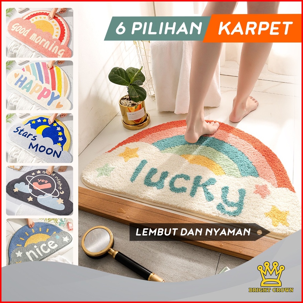Bright Crown Keset Kaki Rainbow Bulu Lembut Keset Alas Kaki Motif Pelangi Anti Slip 6 Motif