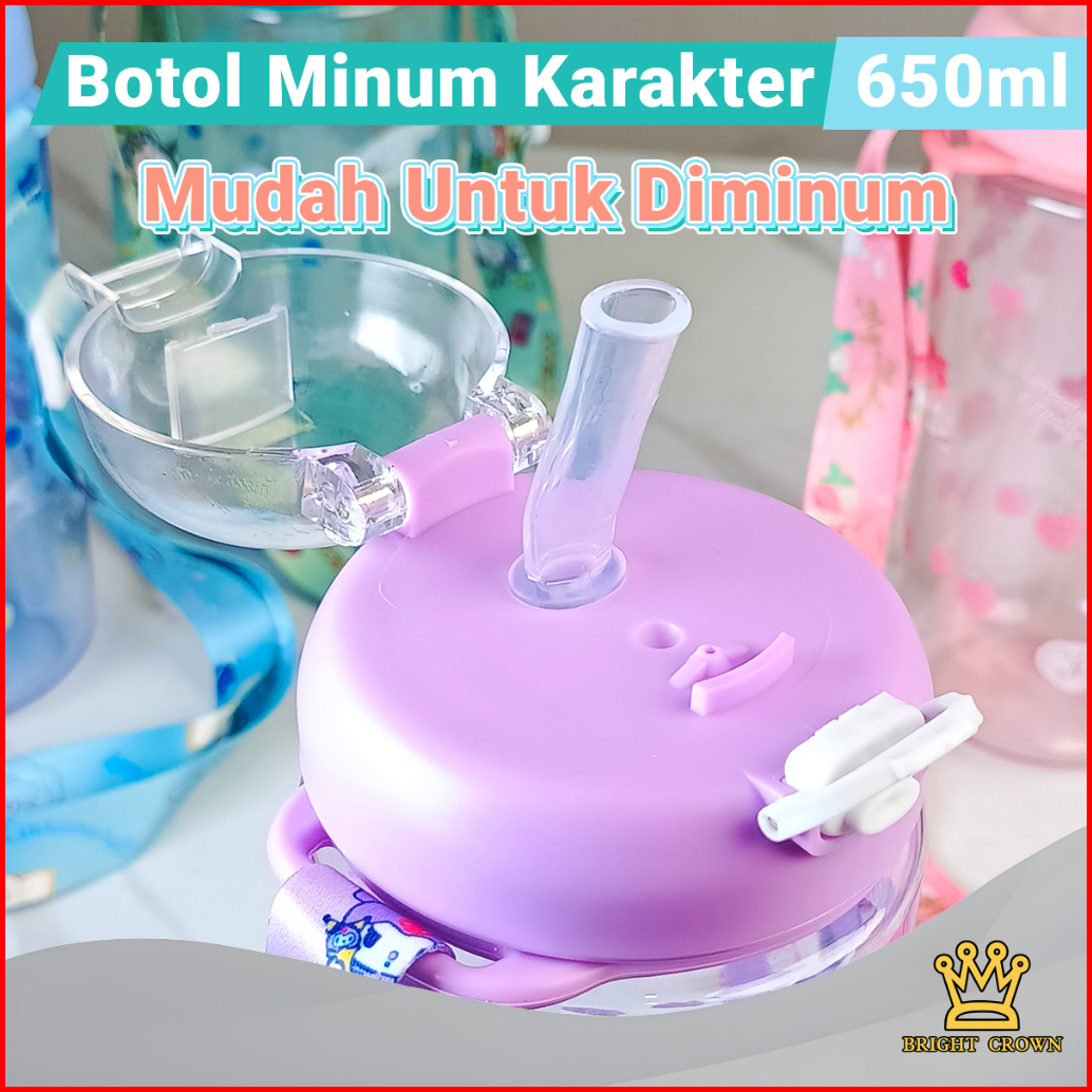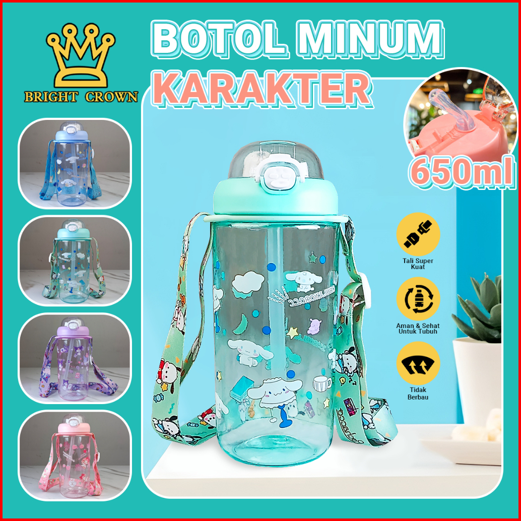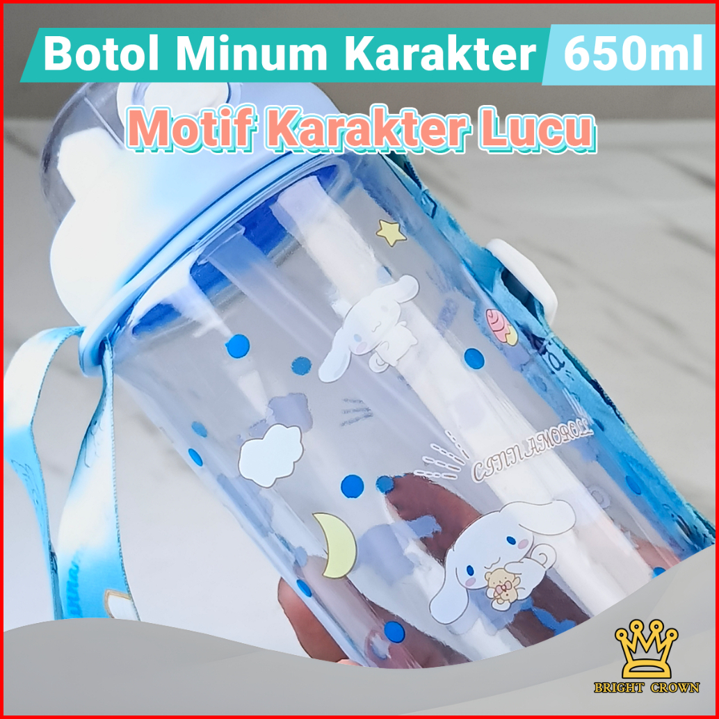 Bright Crown Botol Minum Transparant Anak Sekolah 650 Ml Karakter Cinnamoroll Korumi My Melody Botol Minum Anak Bpa Free