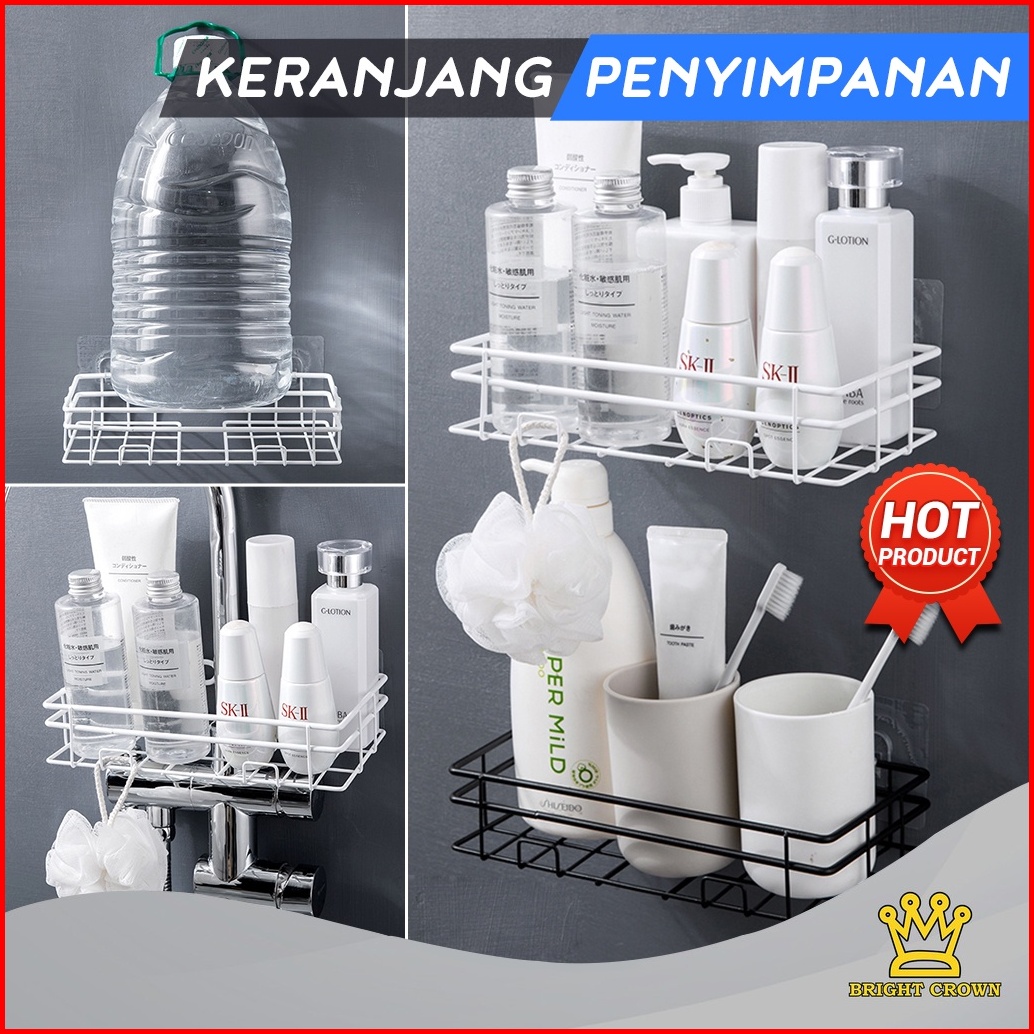 Bright Crown Rak Dinding Besi Serbaguna Rak Dinding Kamar Mandi Dengan Perekat