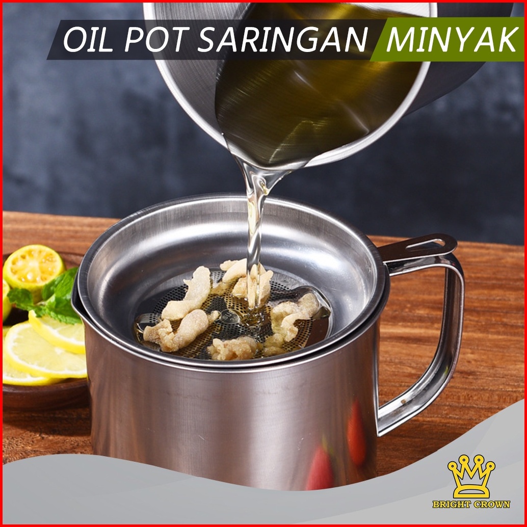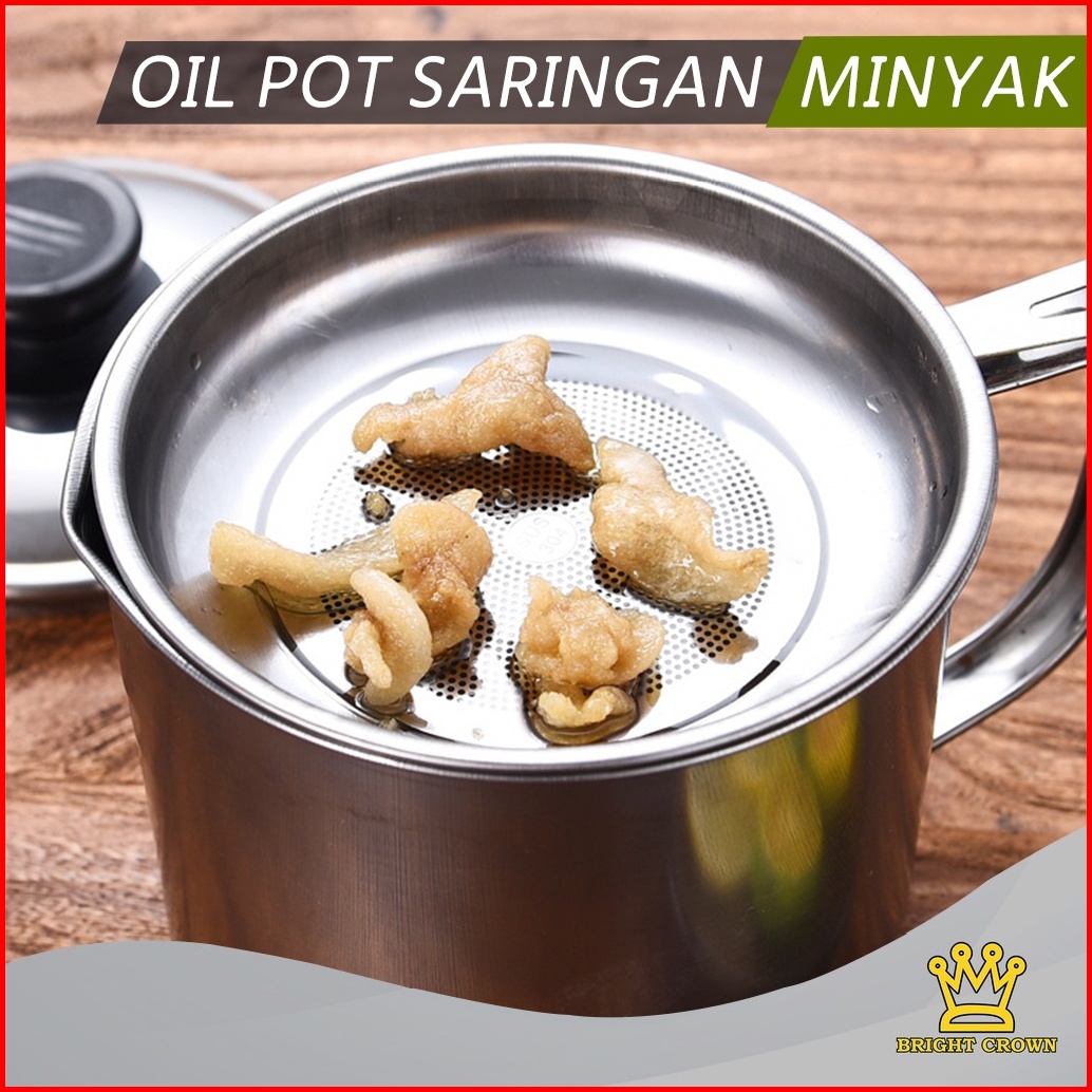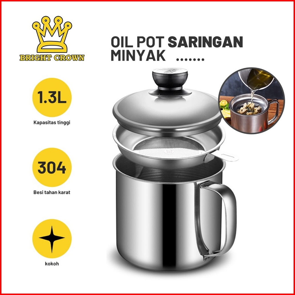 Bright Crown 1 3liter Tempat Saringan Oil Pot Minyak Bekas Gorengan Wadah Penyaring Minyak Stainless Steel