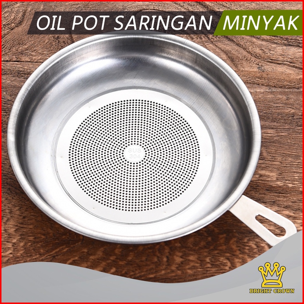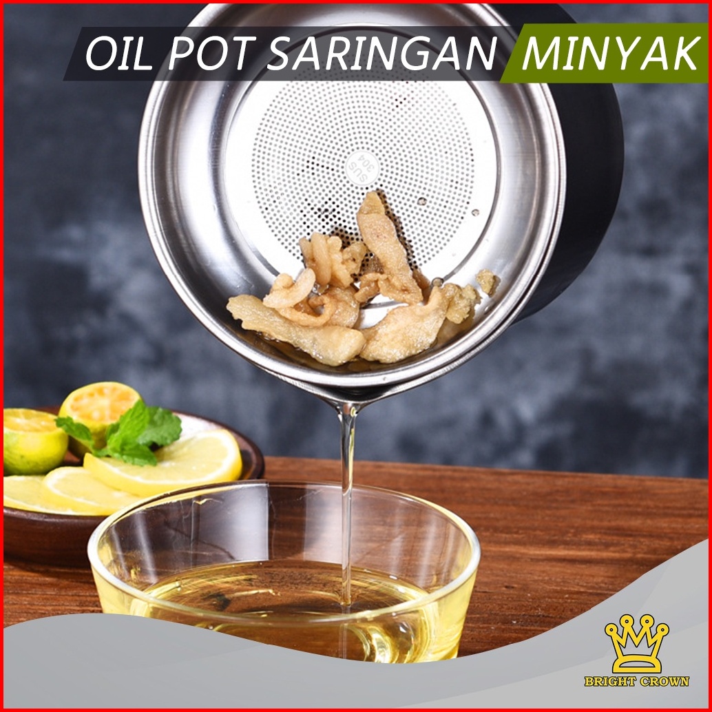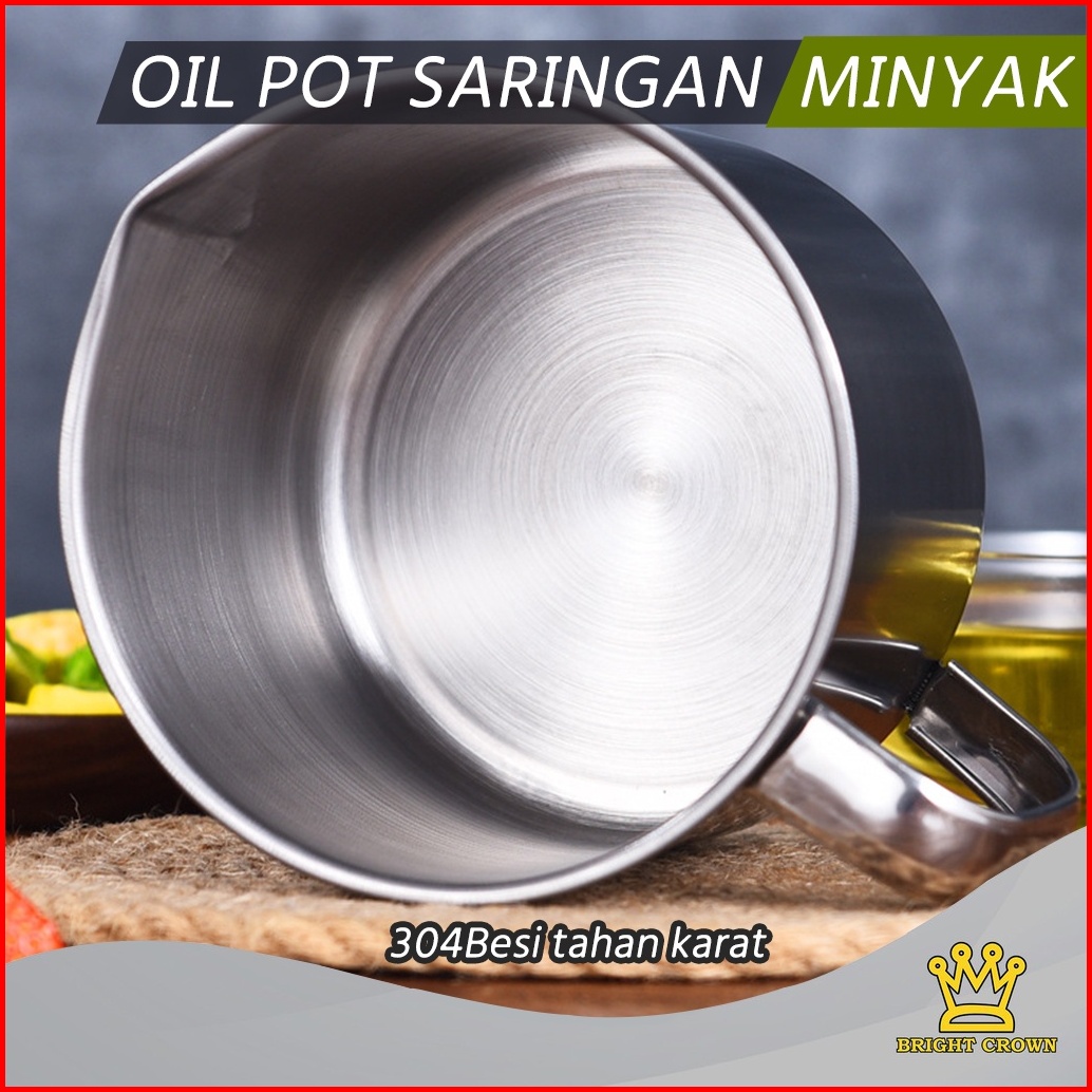 Bright Crown 1 3liter Tempat Saringan Oil Pot Minyak Bekas Gorengan Wadah Penyaring Minyak Stainless Steel