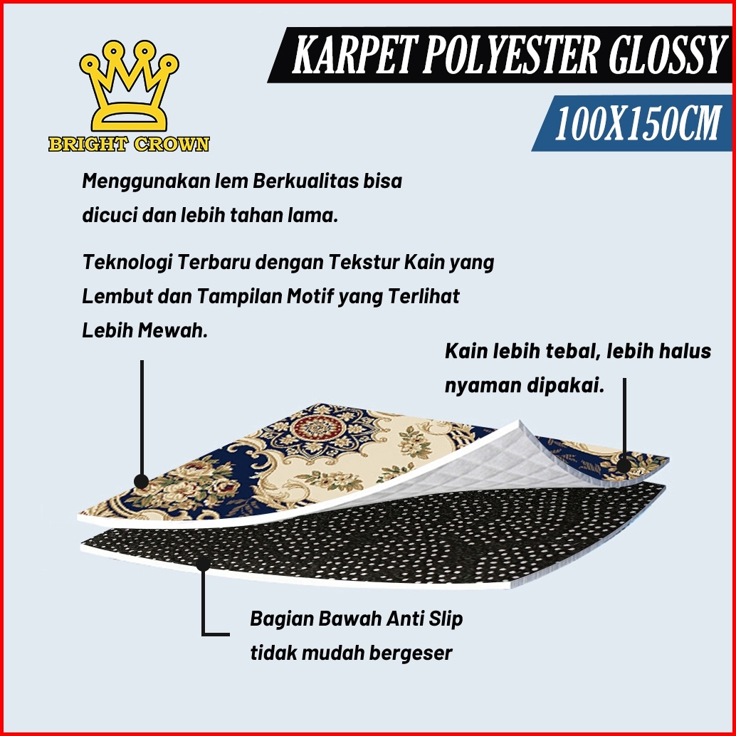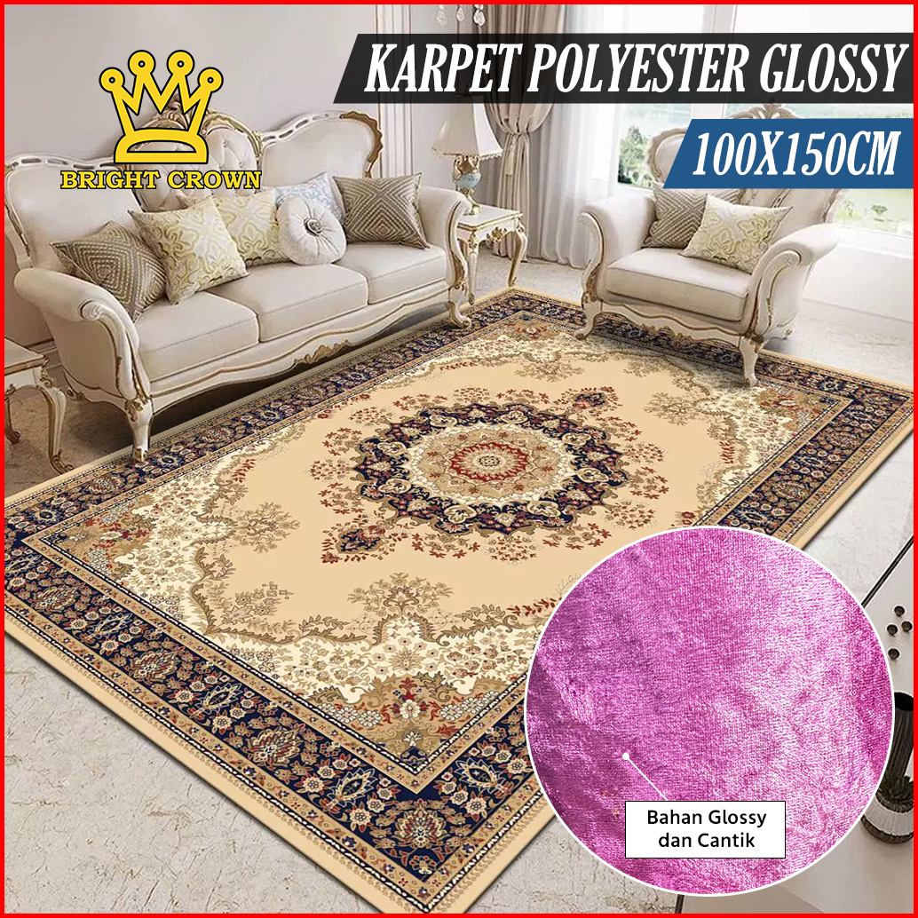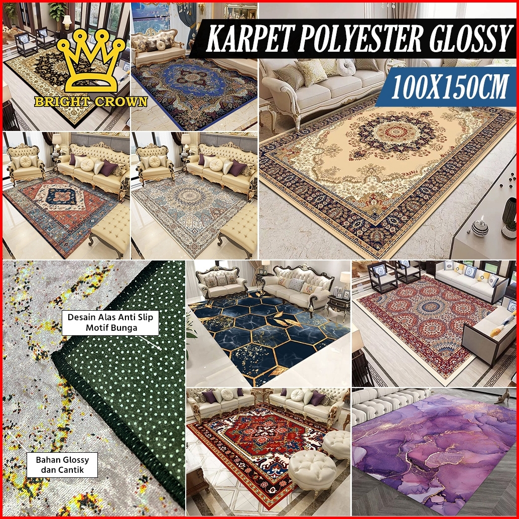 Bright Crown Beli Lokal Terbaru Karpet Lantai Eropa 100x150cm Bahan Polyester Glossy Anti Slip Ruang Tamu