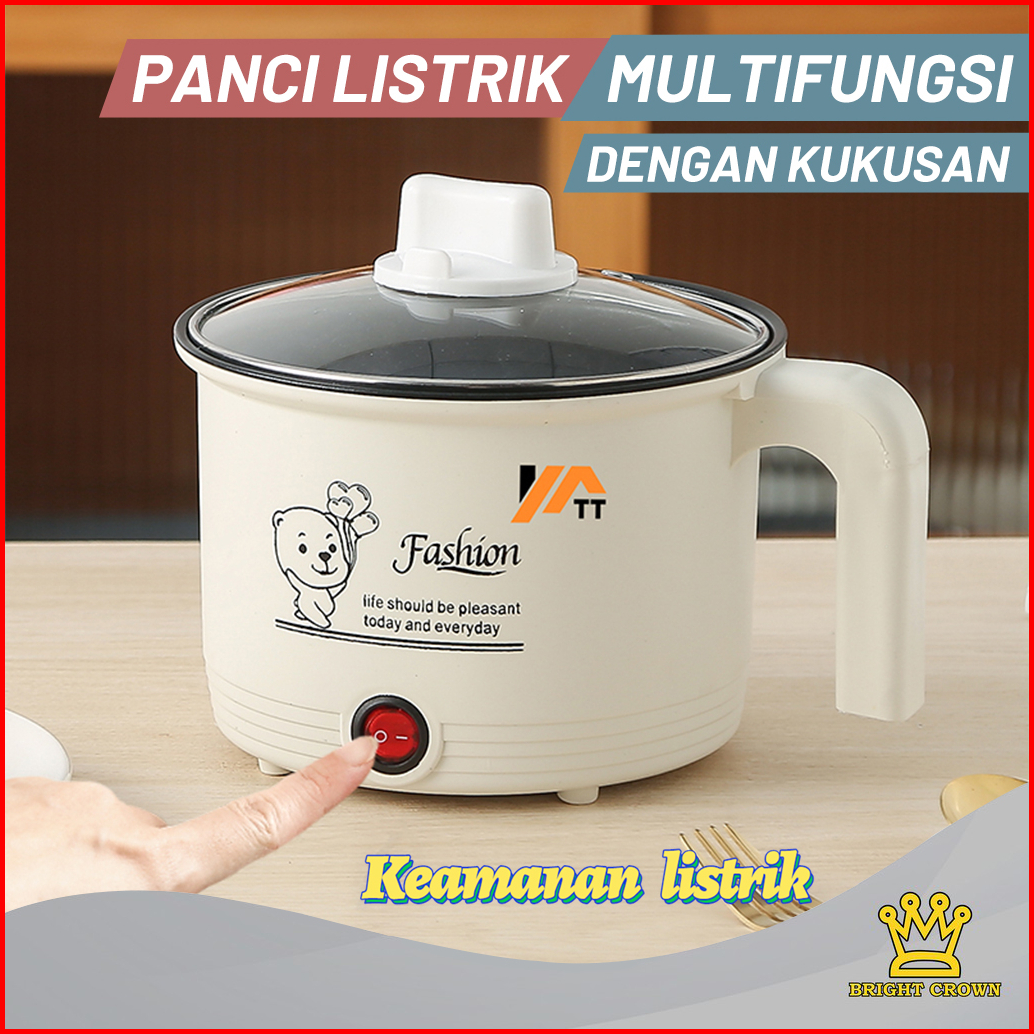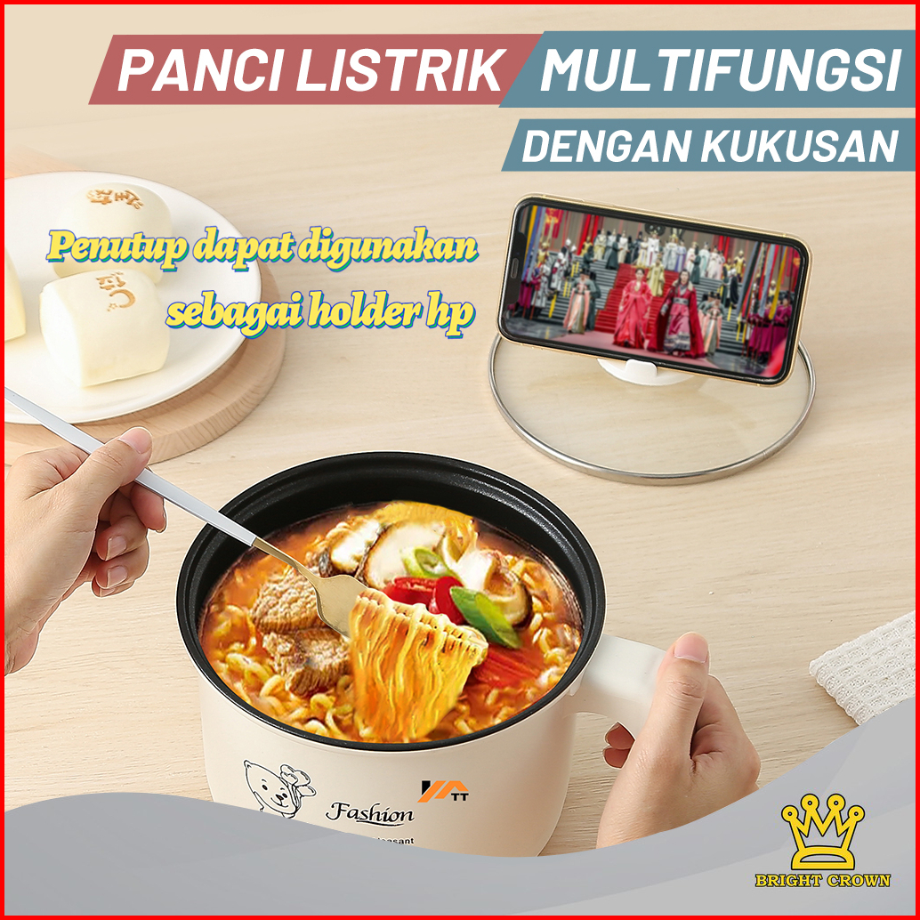 Bright Crown Panci Listrik Free Kukusan Mini Rice Cooker Lapisan Keramik 1.5l 2in1 Multifungsi
