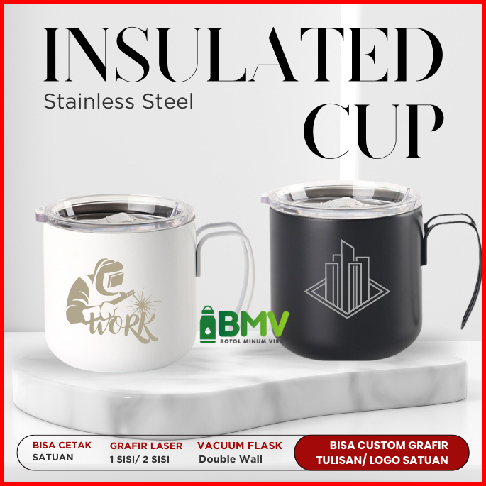 Coffee Cup Stainless Tutup Aesthetic Tahan Panas Dingin Premium Mug Gelas