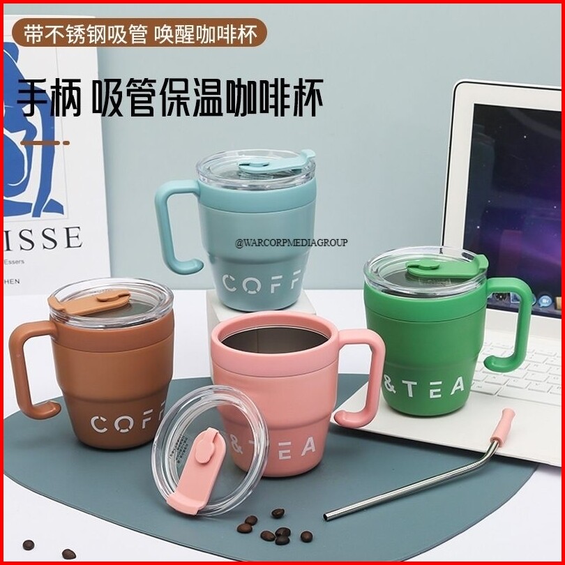 Wmedia Mug Stainless 480ml Free Sedotan Mug Coffee Tea Cangkir Stainless 304