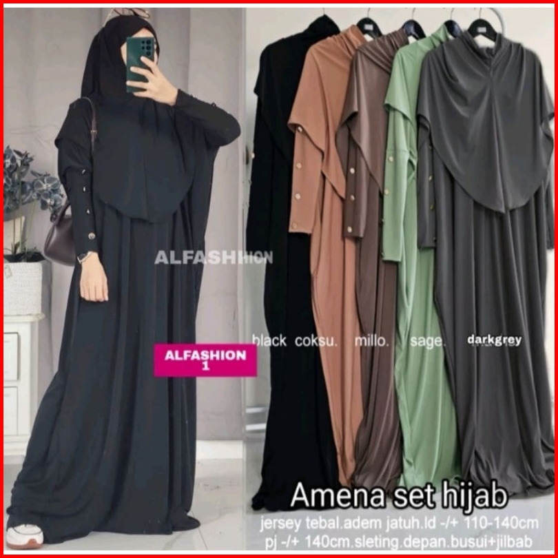 Promo 12.12 Ready Siap Kirim Gamis Kaftan Set Hijab Best Seller Bahan Jersey Tebal Premium Amena Set Hijab Ori By Alfash