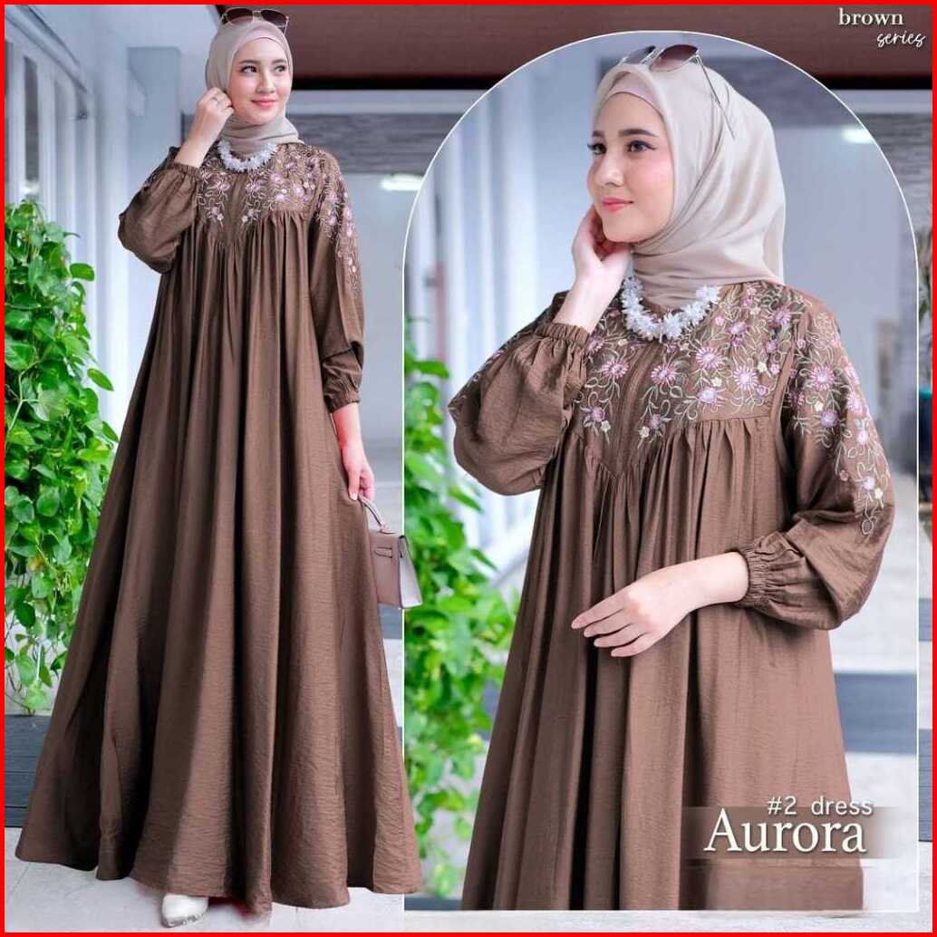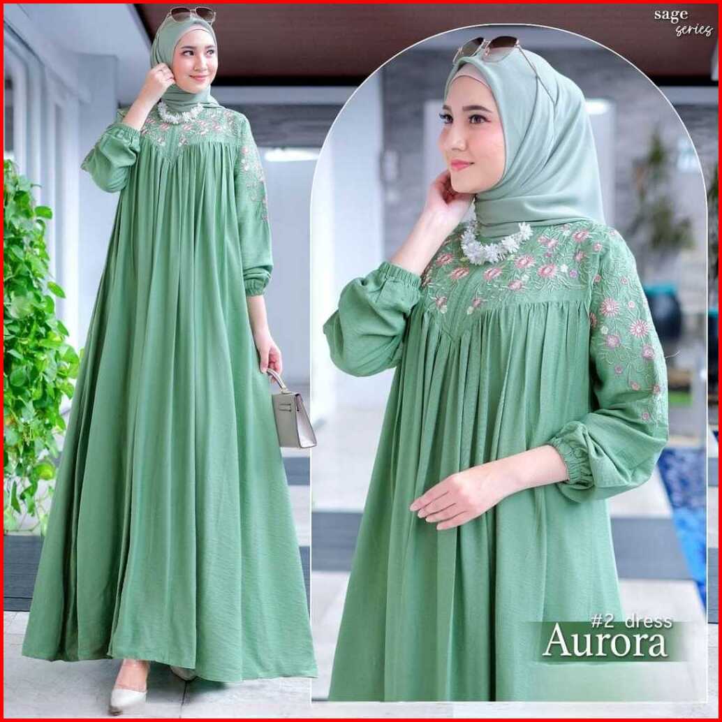 Vallina Outfit - Aurora Dress Maxy Wanita Muslim All Size Fit To Xl Besar Crinkle Ariflow Premium