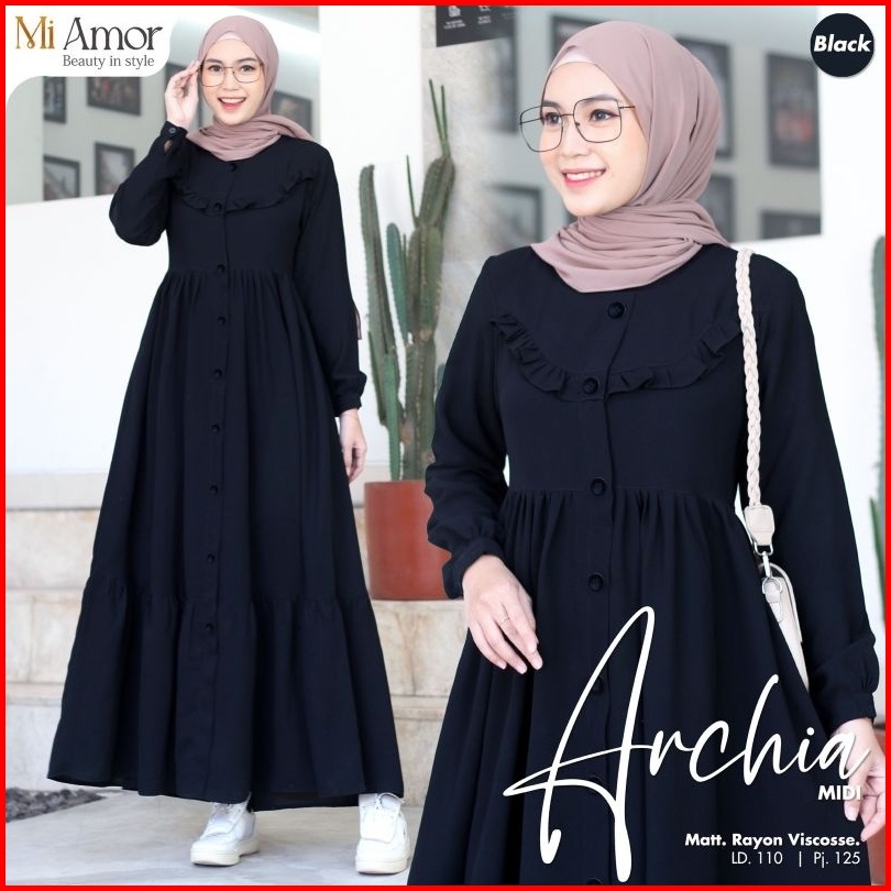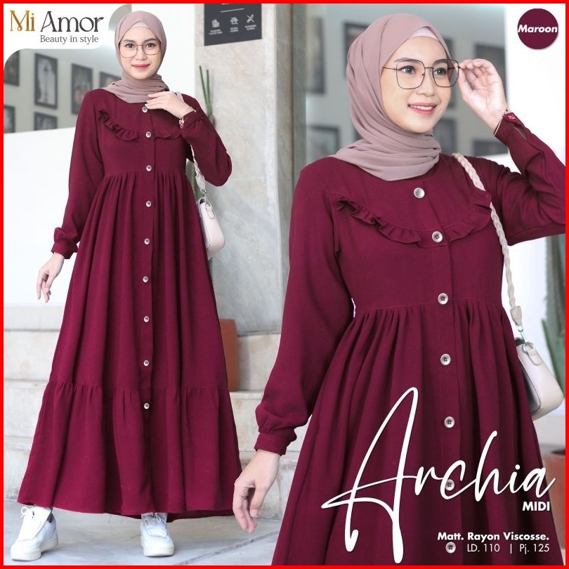 Gamis Maxy Archia Crinkle Airflow Premium Wanita Muslimah Kancing Full Hidup