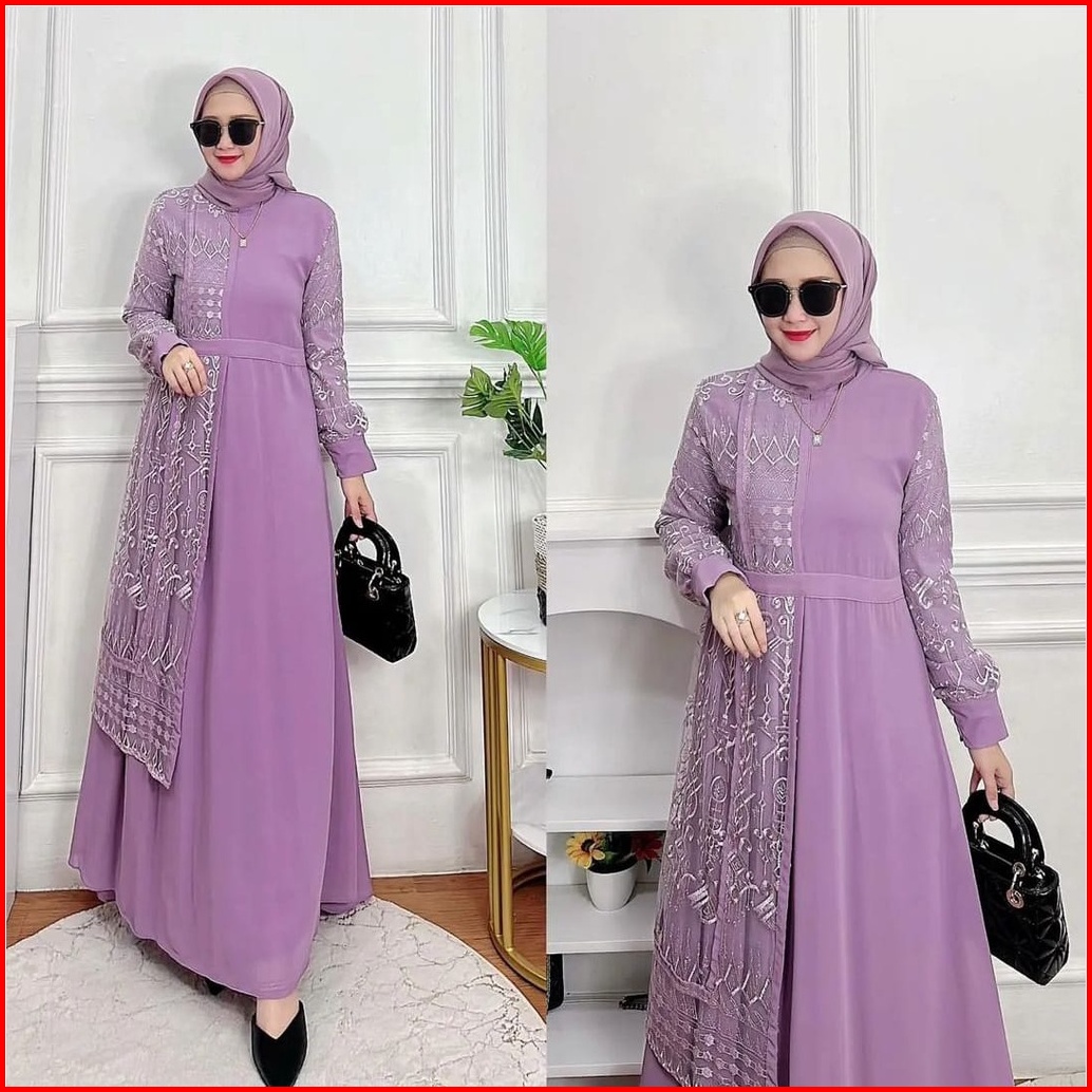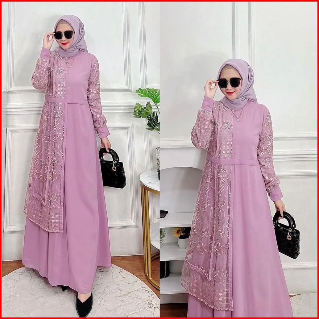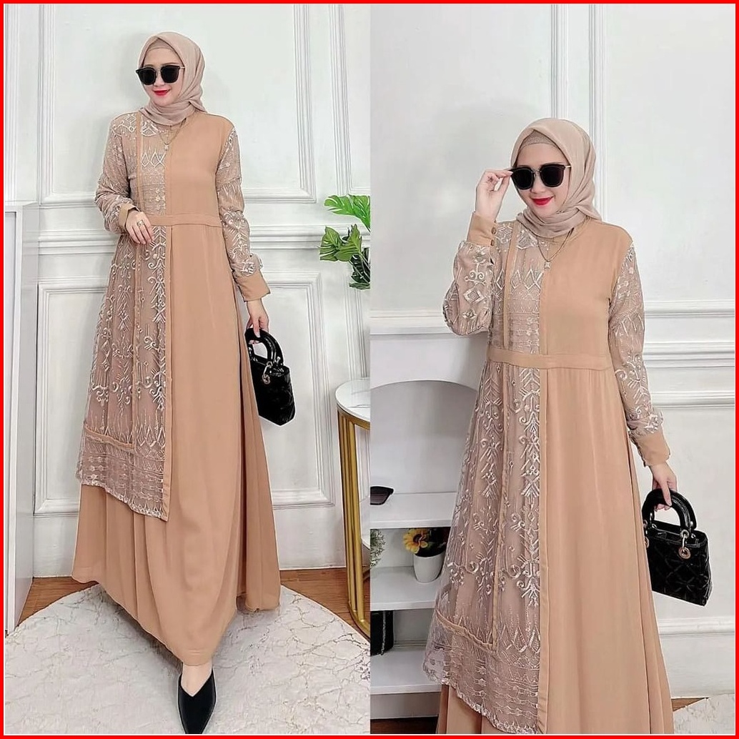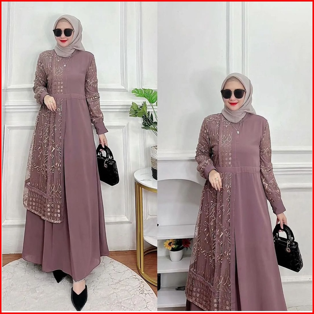 R.a - Rebecca Dress Gamis Muslim Matt Ceruty Babydoll Mix Brukat Full Puring Ootd Lebaran Fashion Terlaris