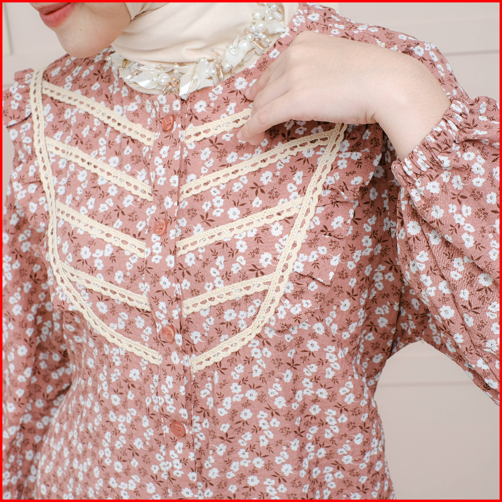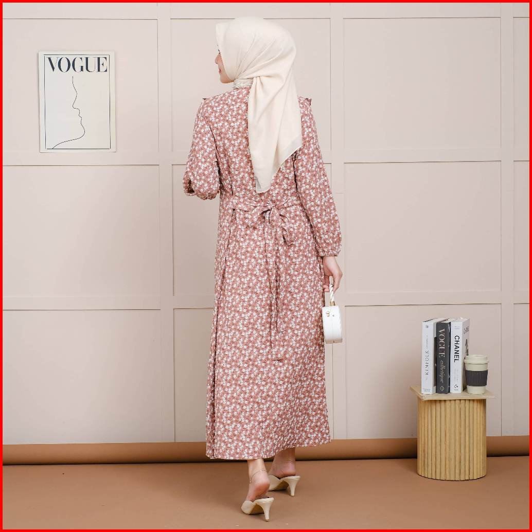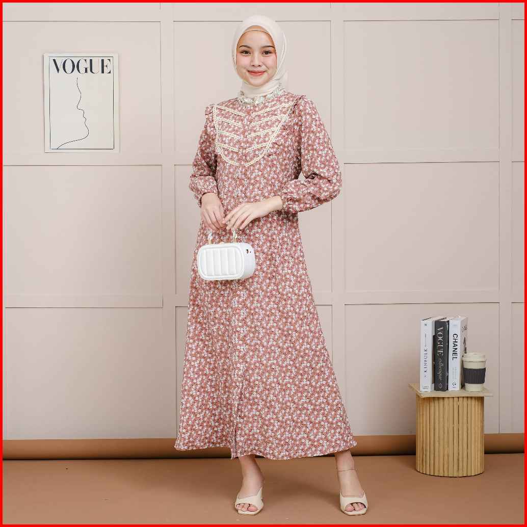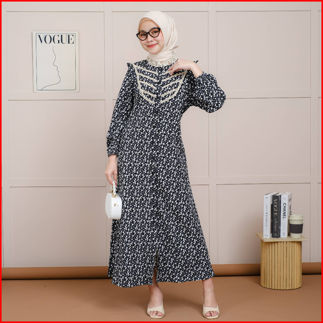 Mayoutfit Delynda Mididress Dress Wanita Motif Bunga Full Kancing