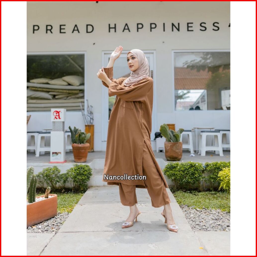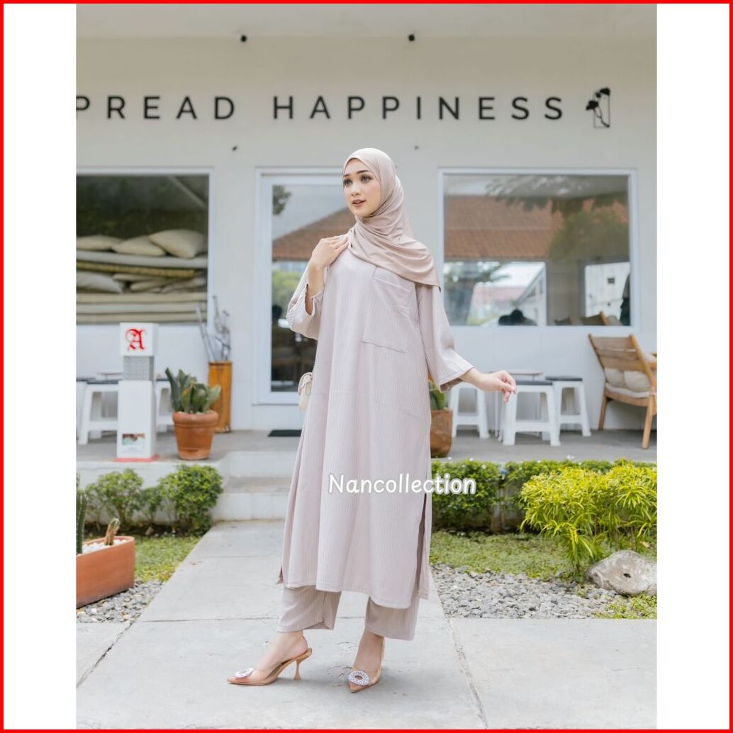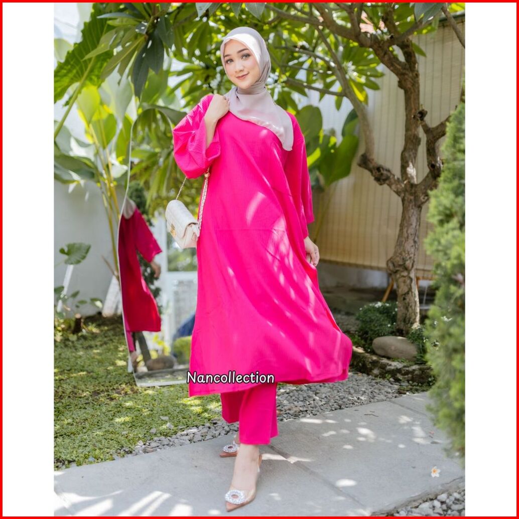 Nan X Gilda Priyadi - Setelan Long Tunik Kaos Knit Gemes Baggy Pants