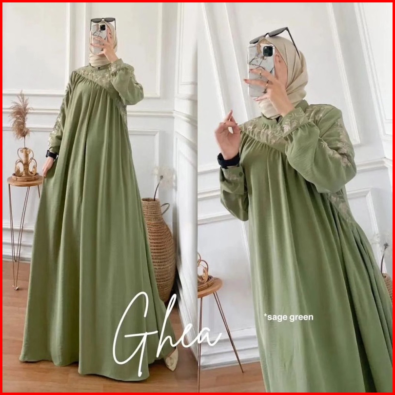 Ghea Dress Maxy L Ld 110 Xxl Ld 130 Cringkel Airflow Ghea Gamis Bordir Asli