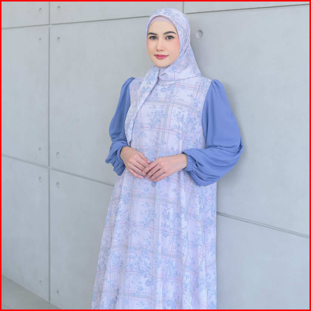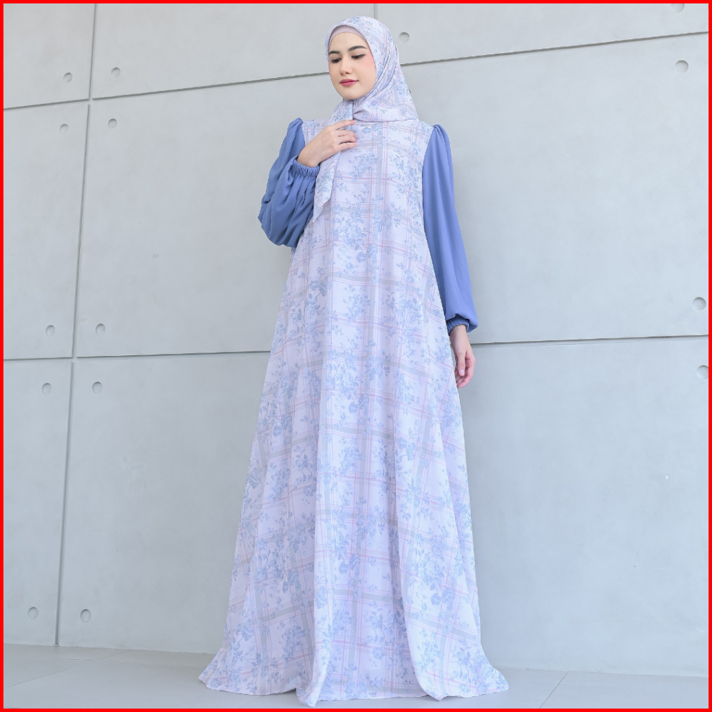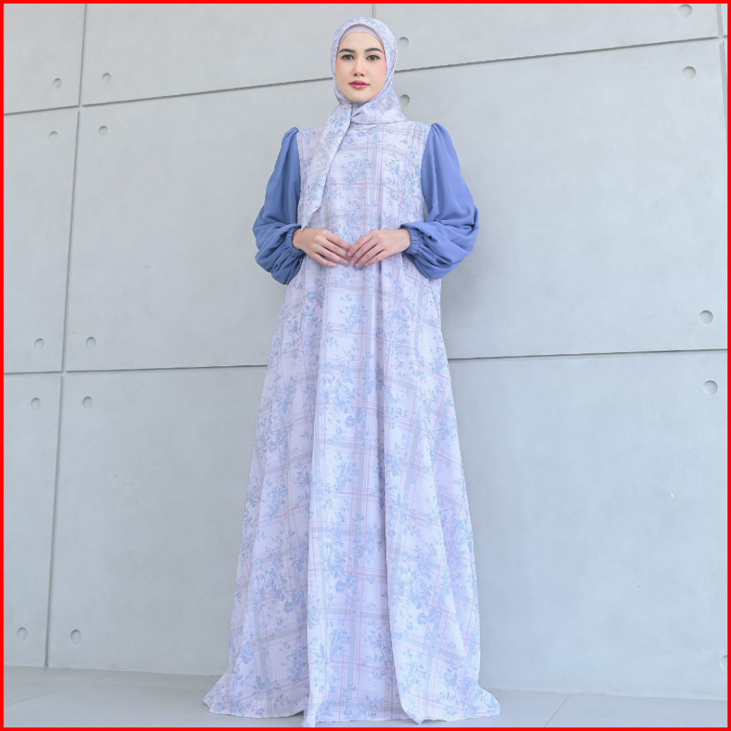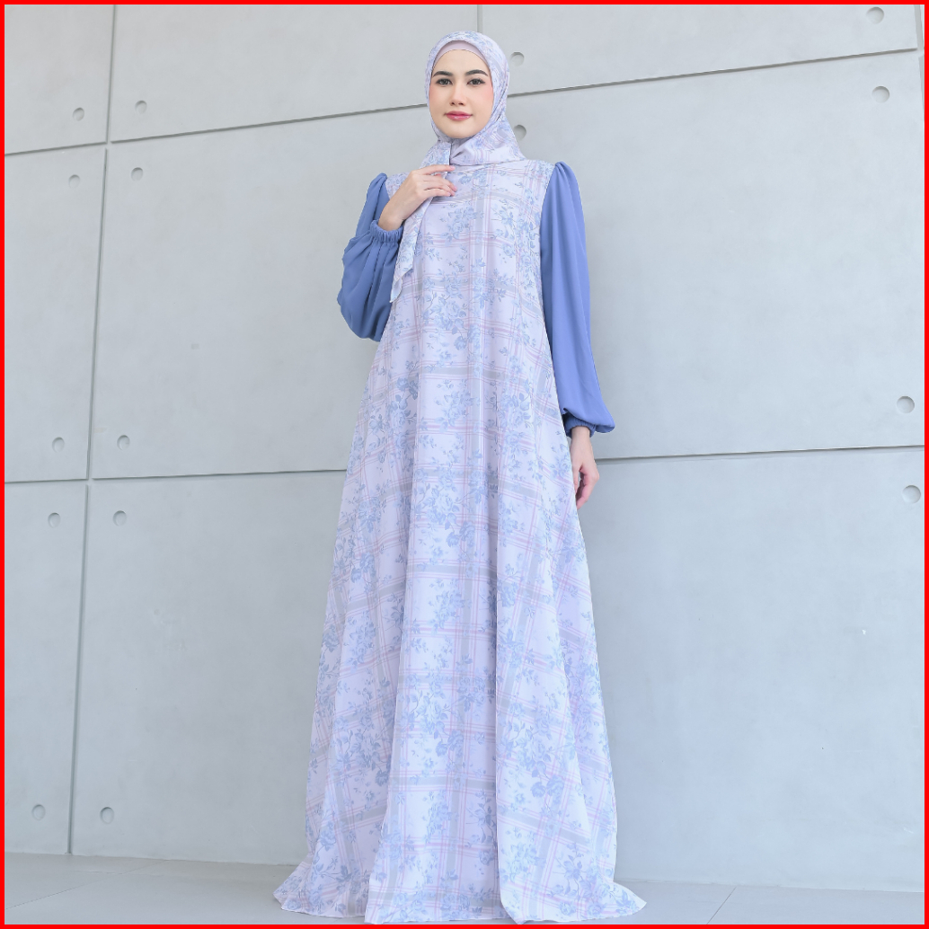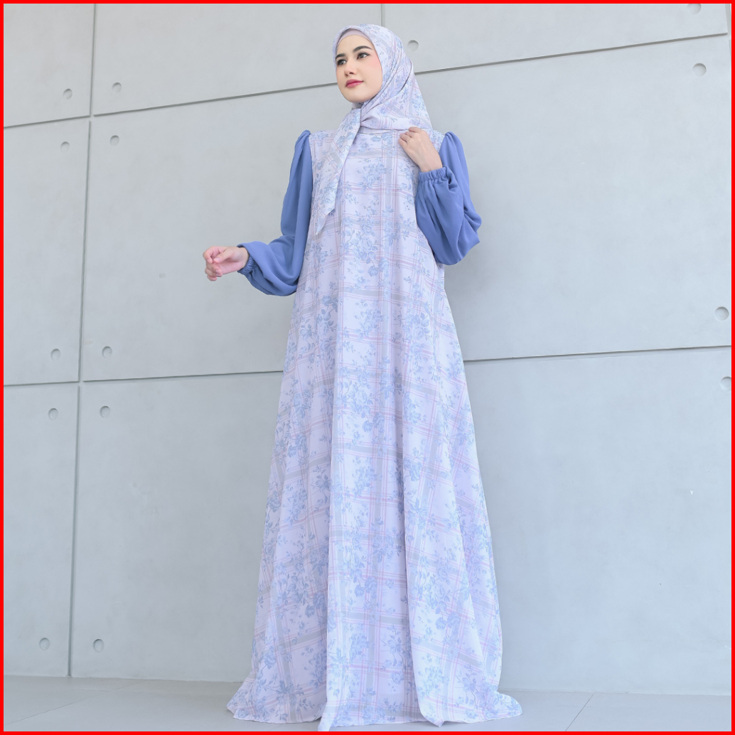 Aisyalina Id Naisha Set Series 35 Pashmina Segiempat Bahan Ceruti Motif Printing Full Furing Gamis Wanita Elegan Tangan