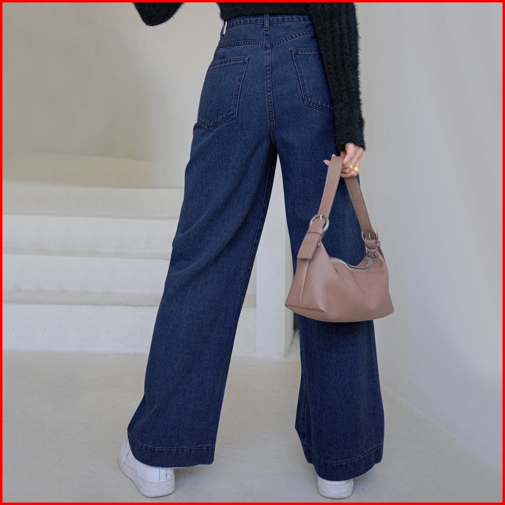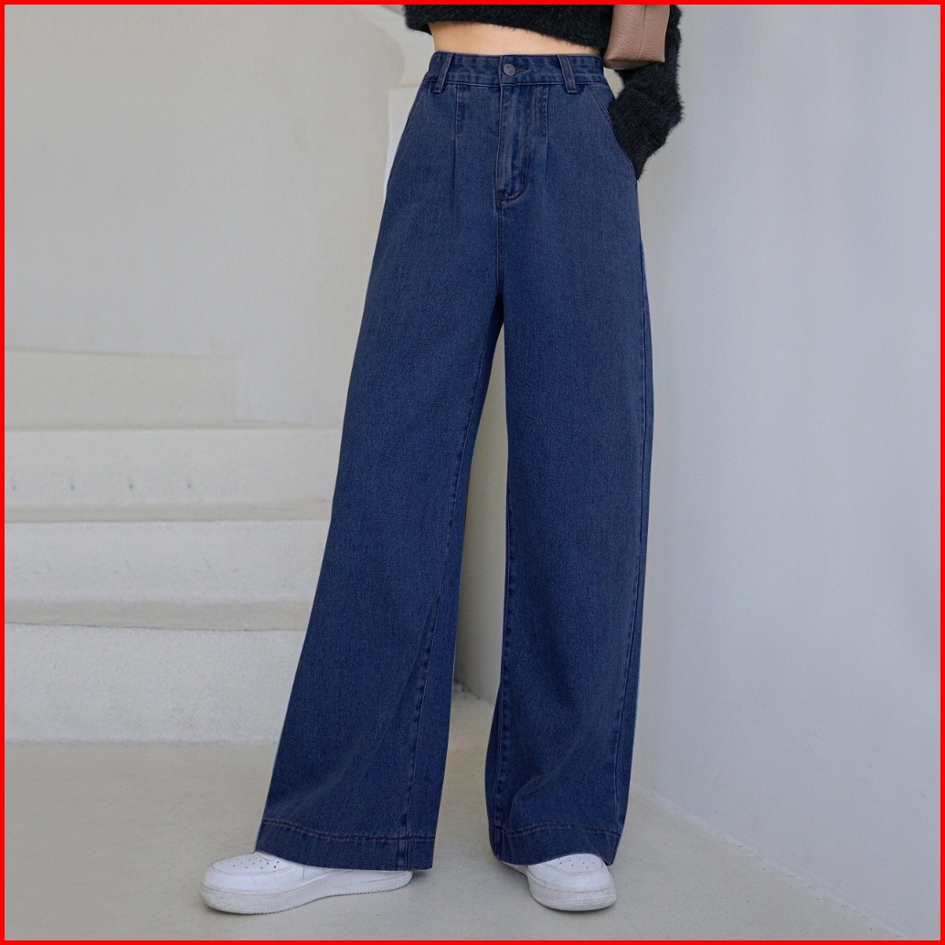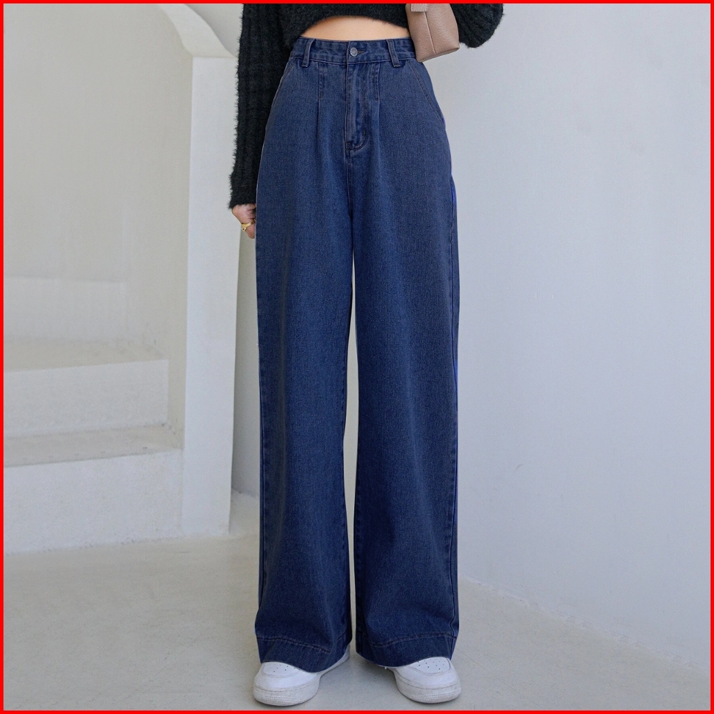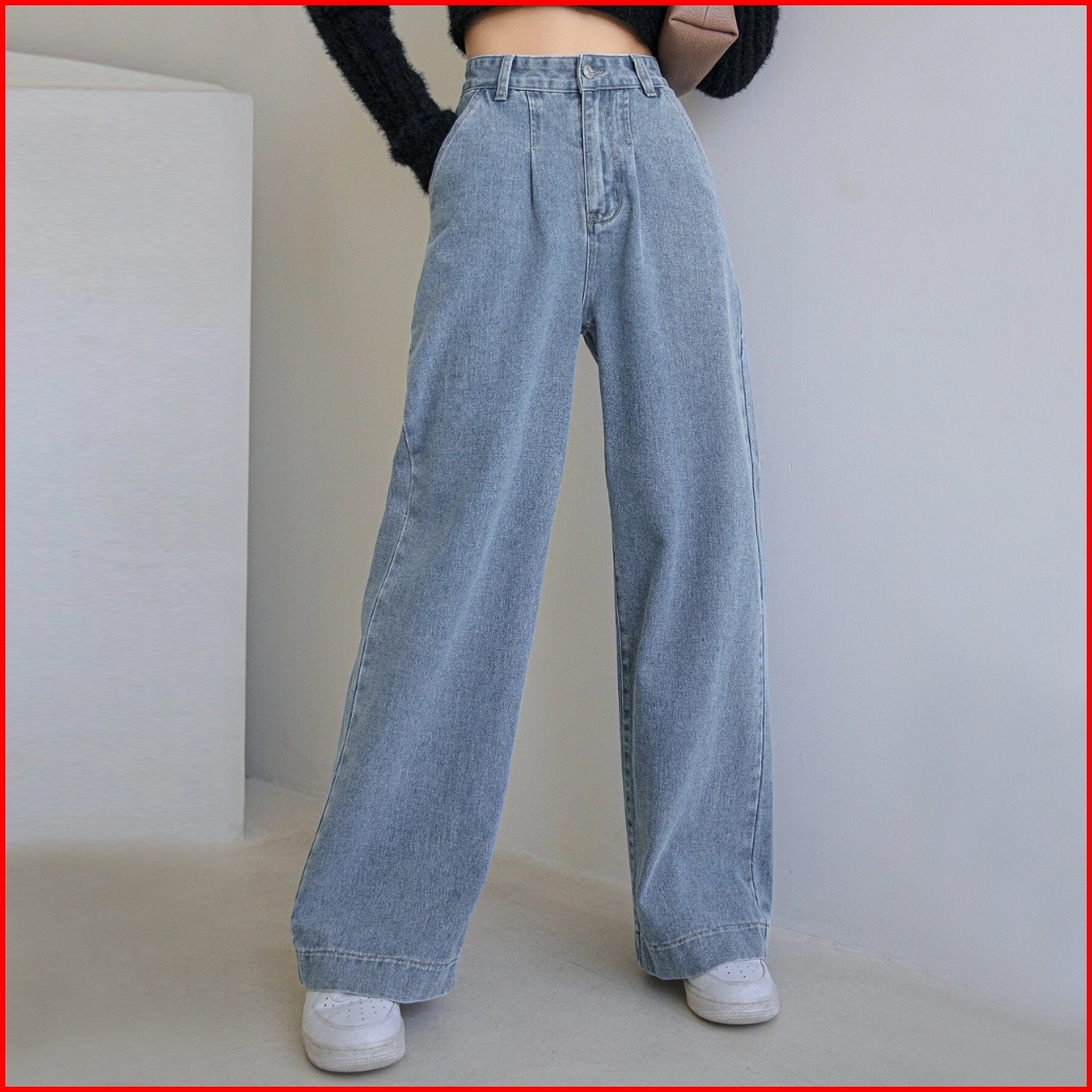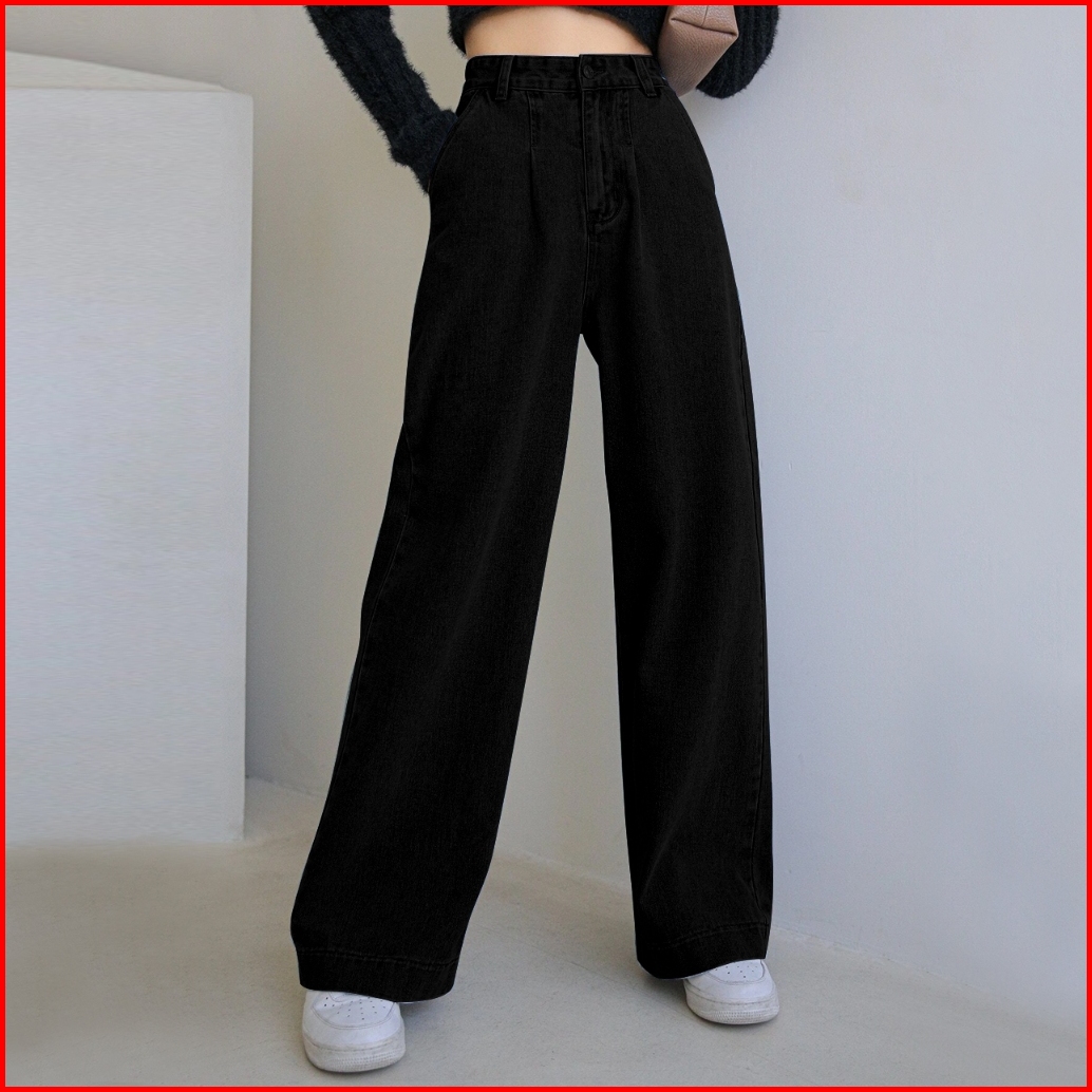 Celana Jeans Cewek Wide Legs Vintage Highwaist Loose Straight Mopping Long Denim Pants Wanita