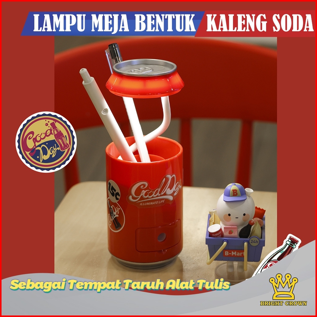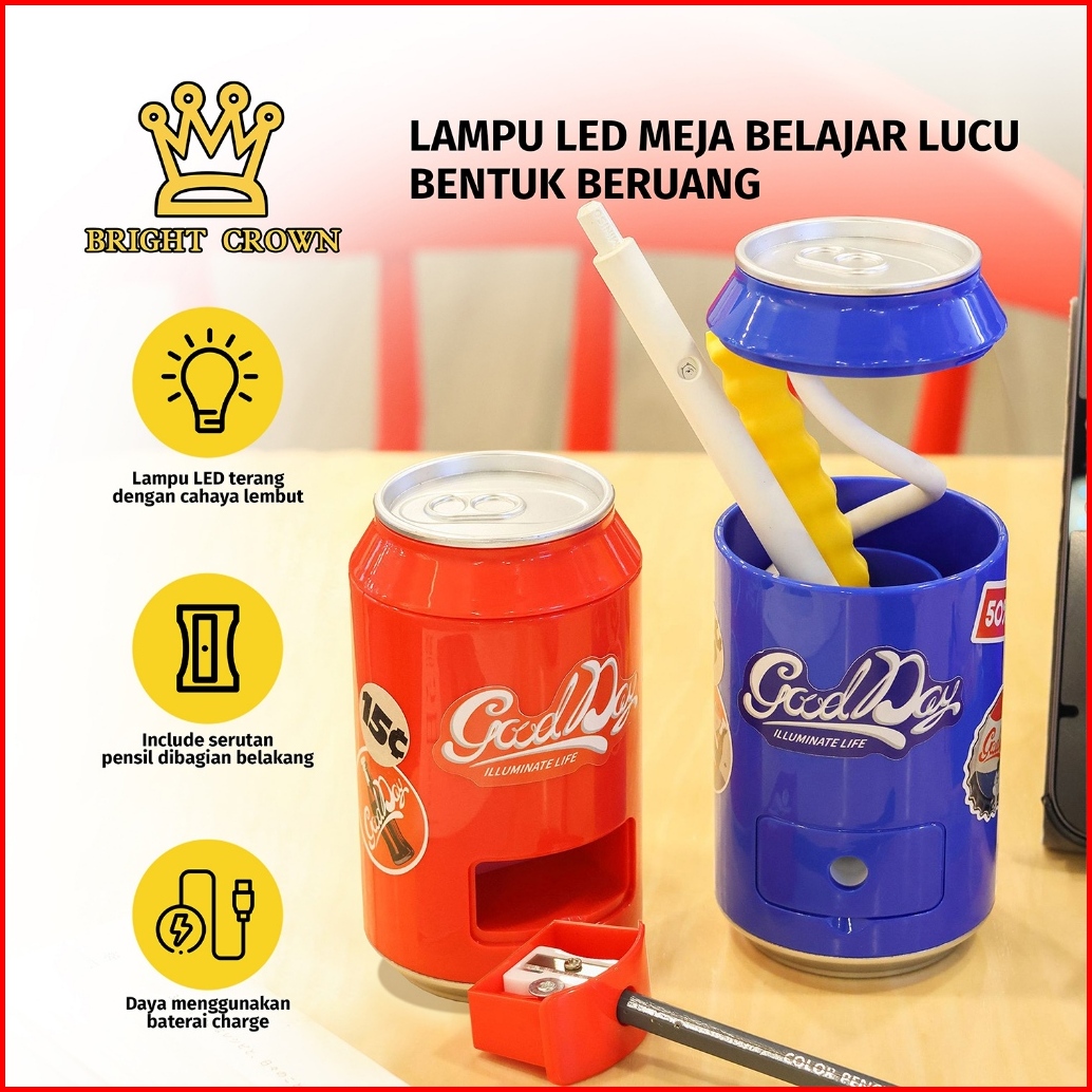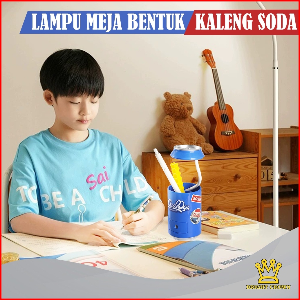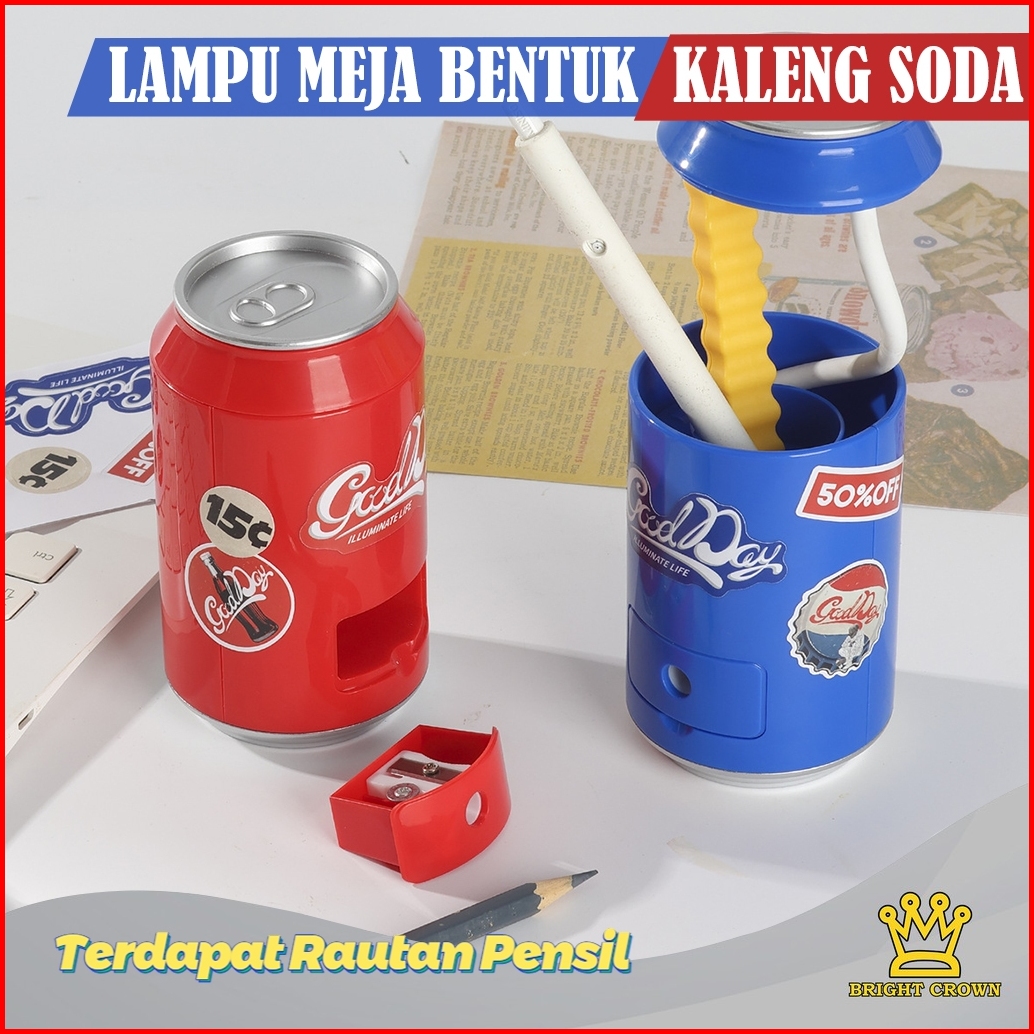 Bright Crown Lampu Meja 3in1 Bentuk Kaleng Soda Lucu Dengan Serutan Pensil Usb Lampu Belajar Mini Portable