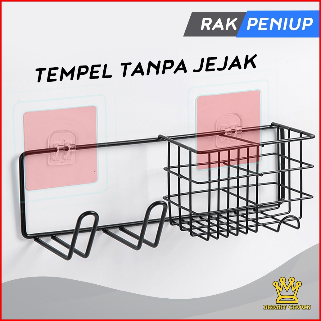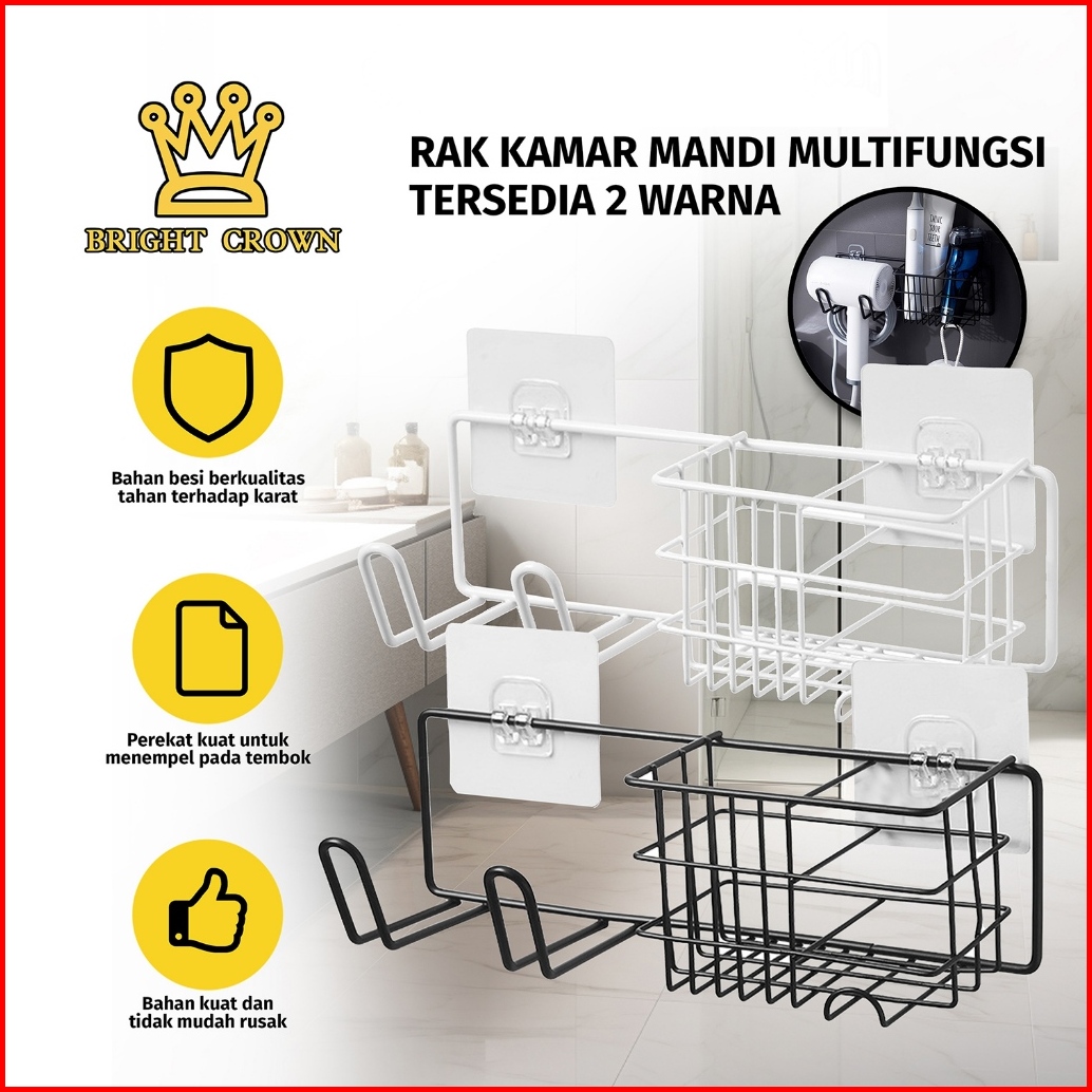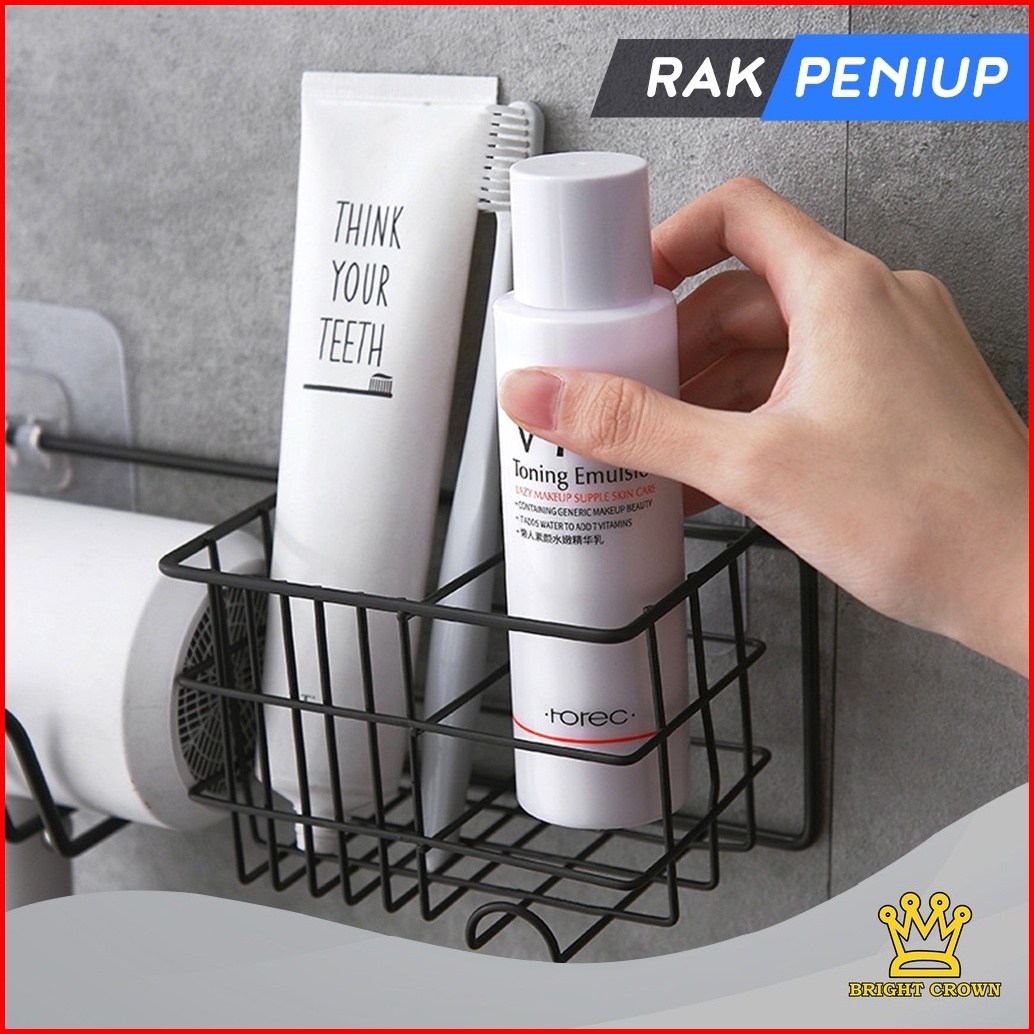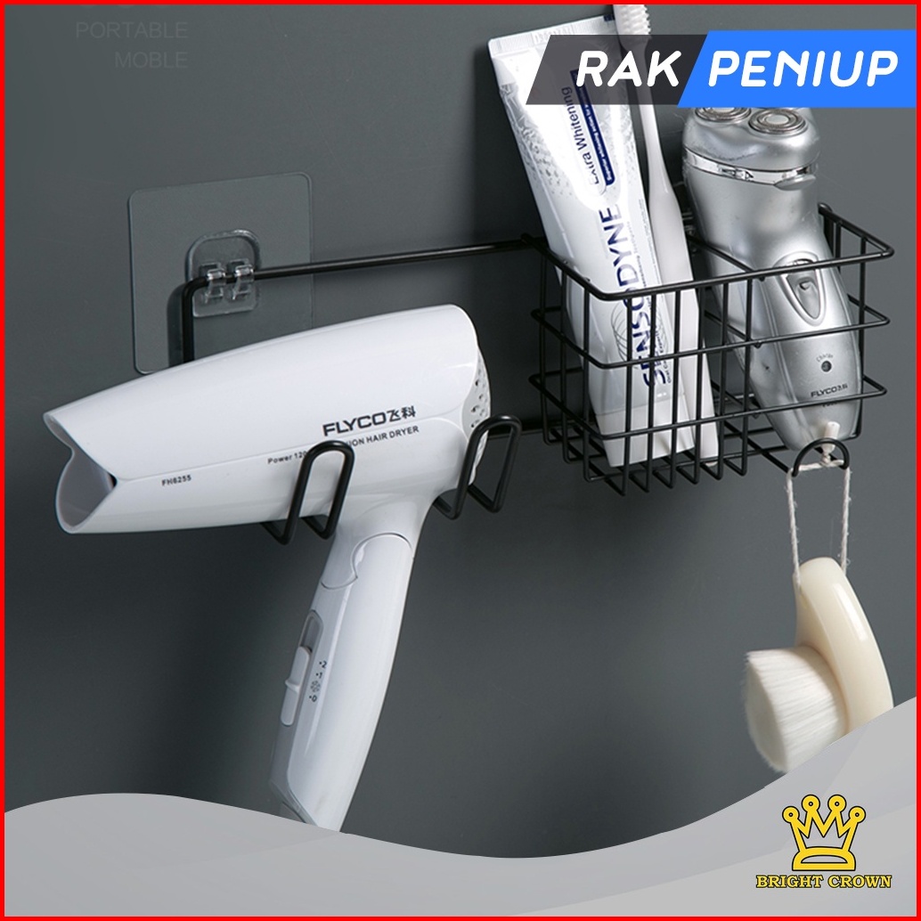 Bright Crown 2in1 Rak Holder Hair Dryer Tanpa Bor Rak Tempel Kamar Mandi Gantungan Hairdryer