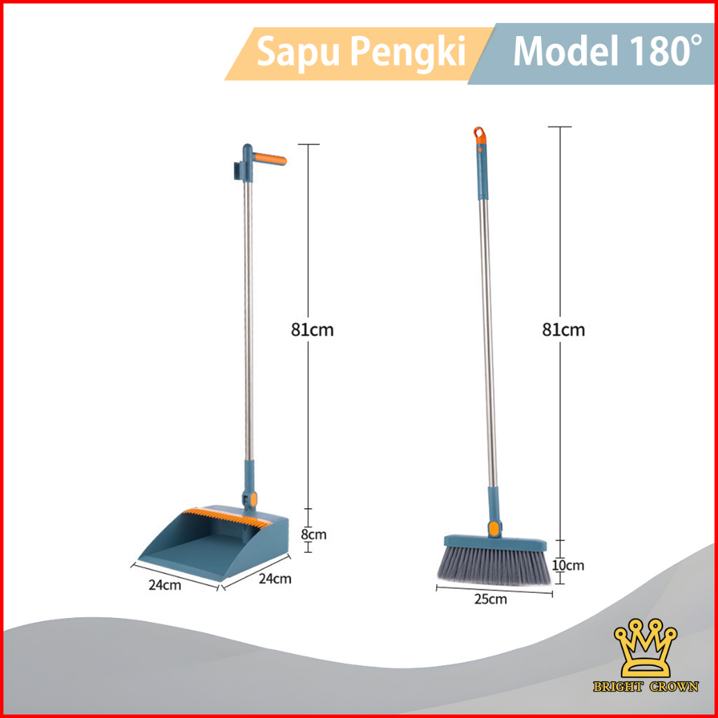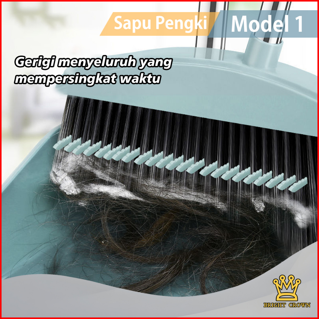 Bright Crown Sapu Set Pengki Lipat Sapu Dan Sekop Sampah Pembersih Lantai Rumah Sapu Set 2in1 Minimalis
