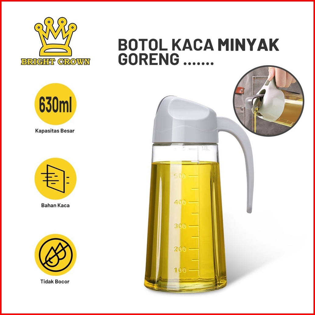 Bright Crown Botol Minyak Goreng Kaca 630ml Tempat Penyimpanan Minyak Kaca Serbaguna