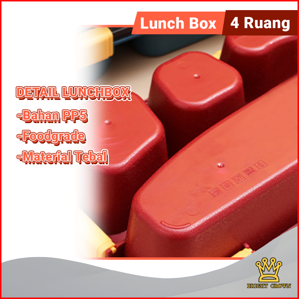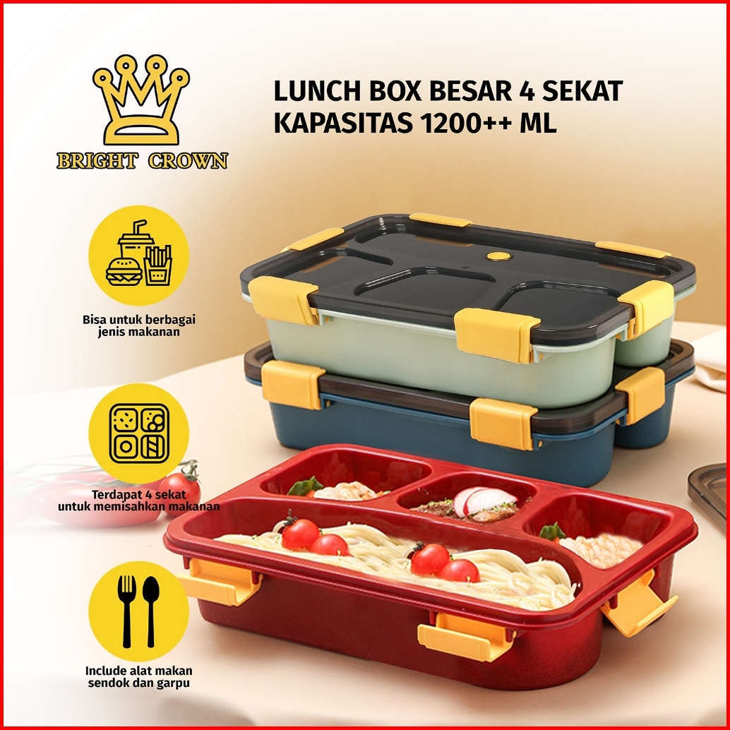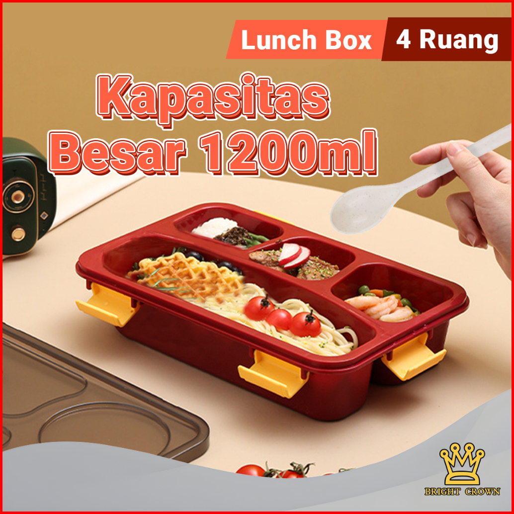 Bright Crown Lunch Box Kotak Bekal 4 Grid 1200 Ml Free Sendok Sumpit Kotak Makan Siang Bersekat Food Grade