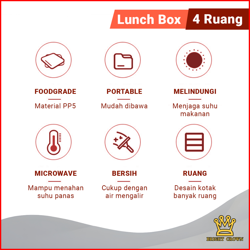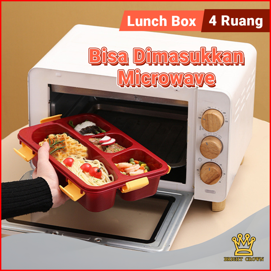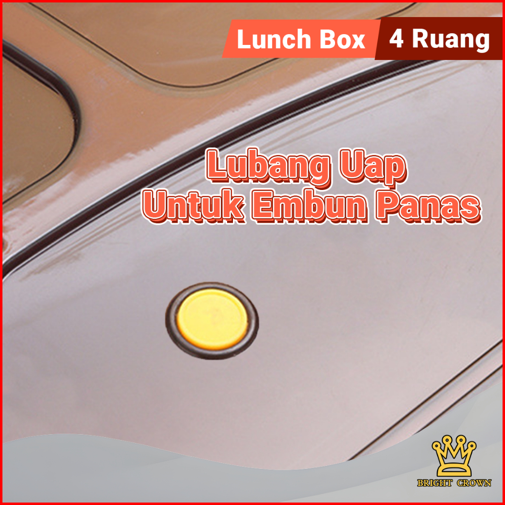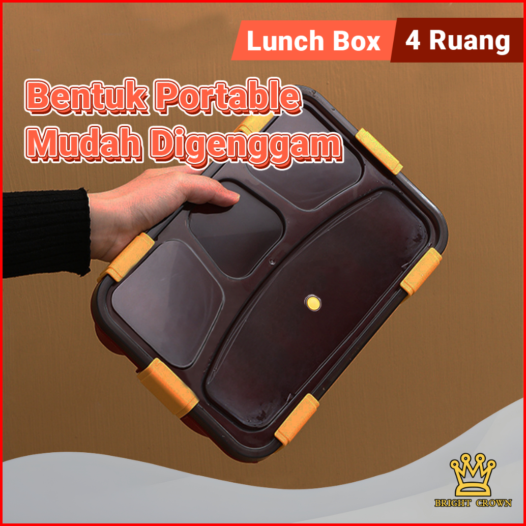 Bright Crown Lunch Box Kotak Bekal 4 Grid 1200 Ml Free Sendok Sumpit Kotak Makan Siang Bersekat Food Grade