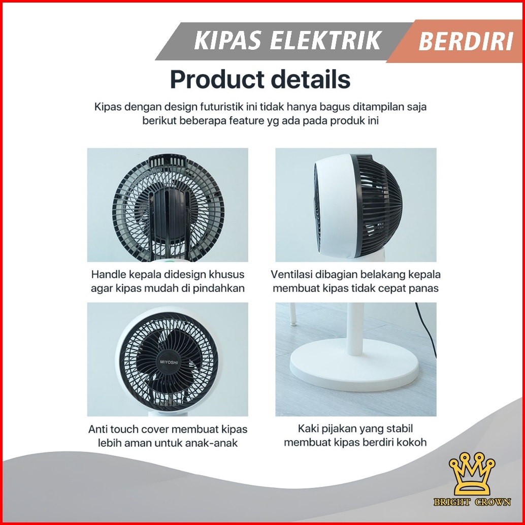 Bright Crown Kipas Angin Elektrik Praktis Premium Jangkauan Angin Jauh Stand Fan Low Noise Standing Fan Electric Low Noi