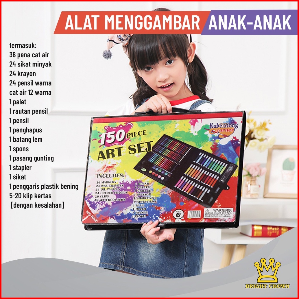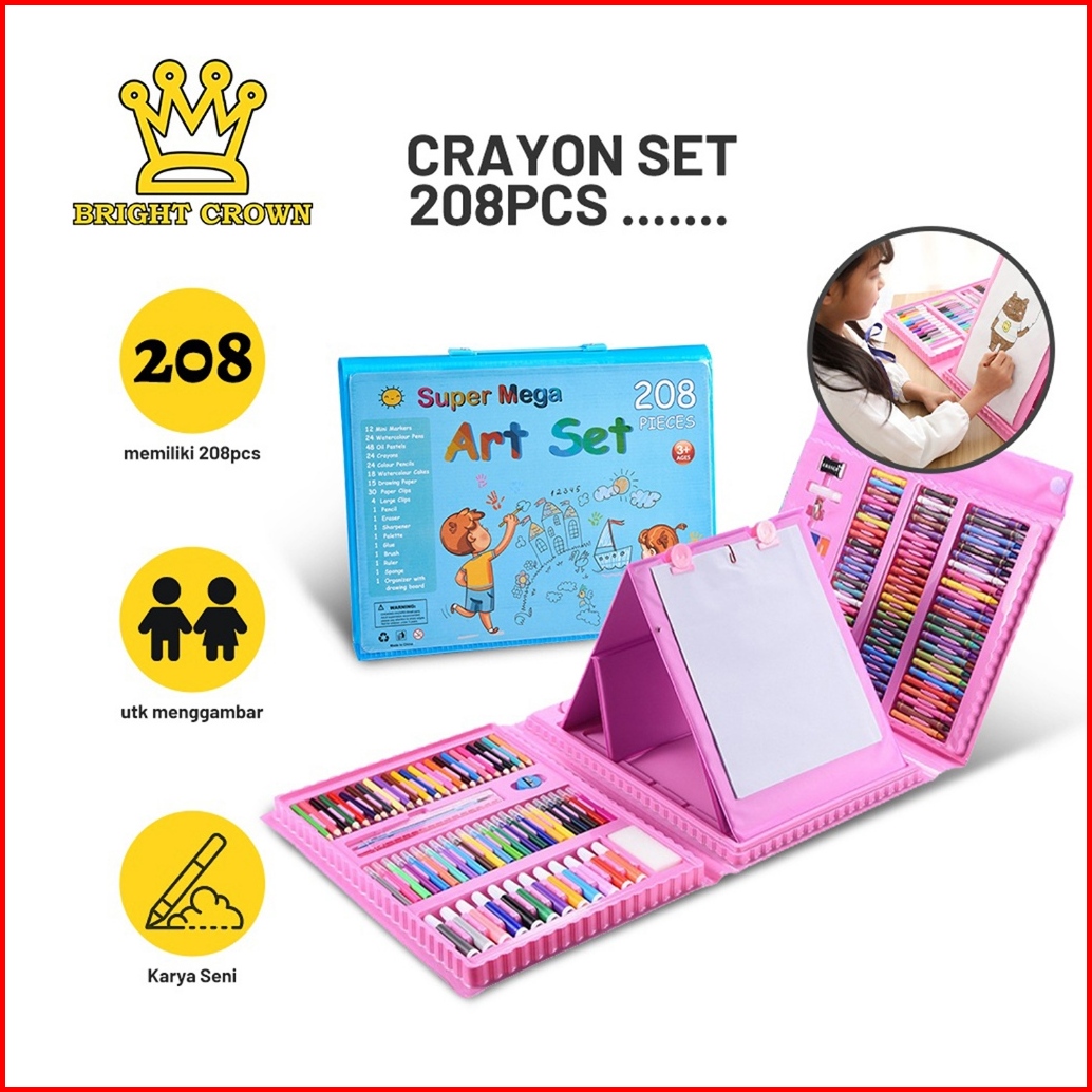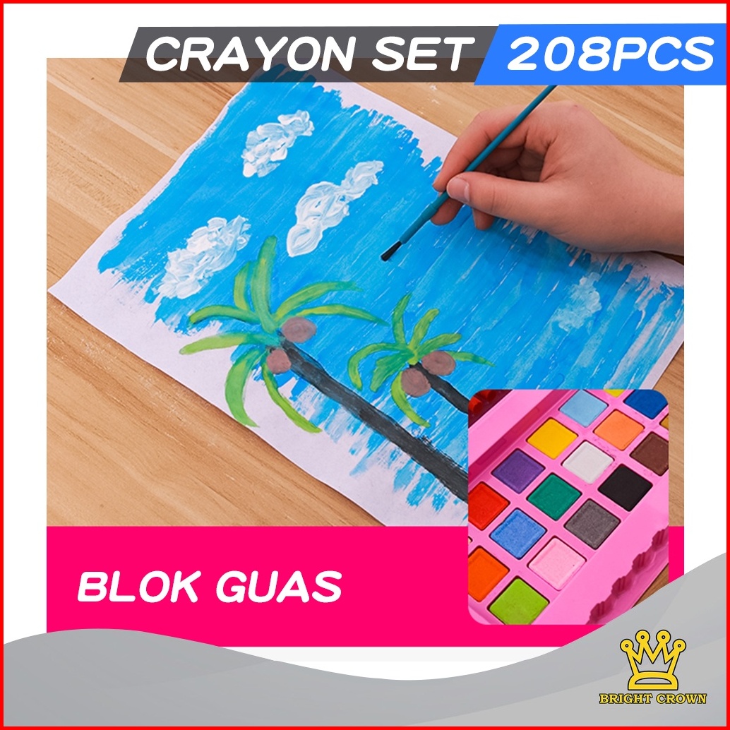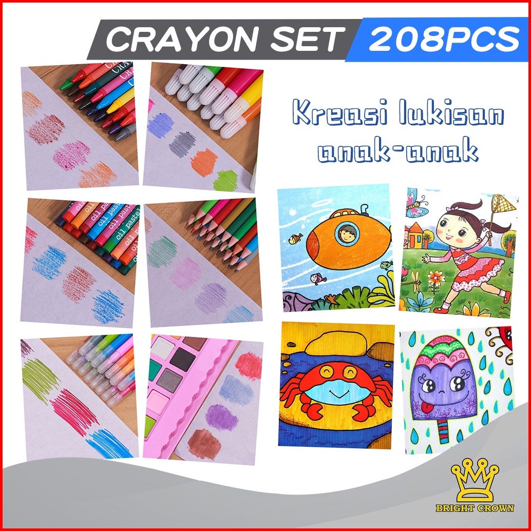 Brightcrown Pensil Warna Crayon Set Isi 208pcs 150pcs Crayon Set Warna Cocok Menggambar Mewarnai
