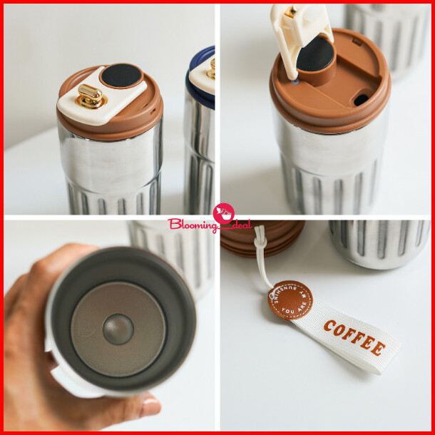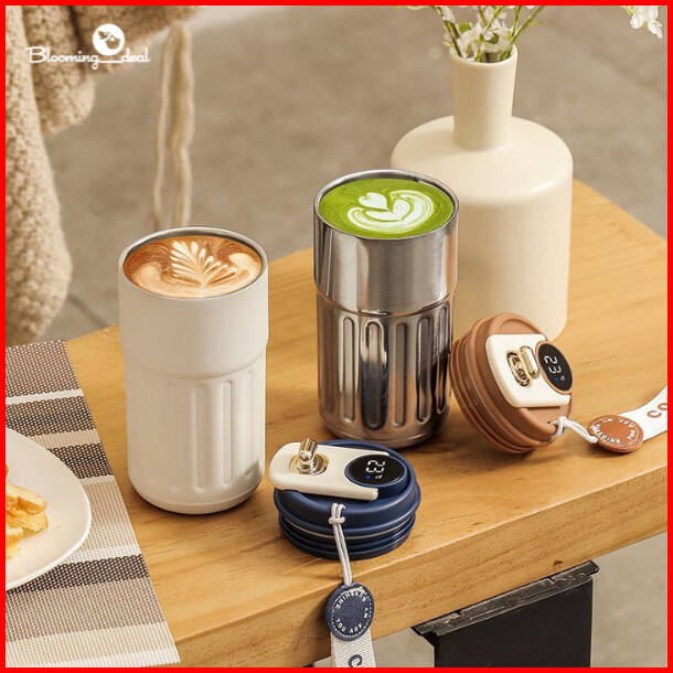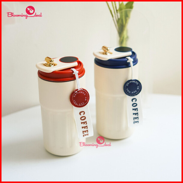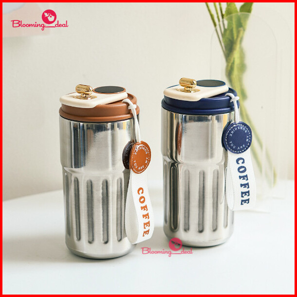 Coffee Mug Aesthetic Stainless Steel Led Dengan Tali 410ml Hn136