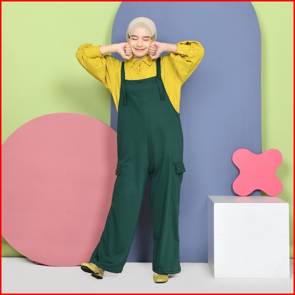 Mybamus Thara Loose Overall Cargo - Jumpsuit Muslim - Baju Kodok Korea - Jumpsuit Kulot Kargo