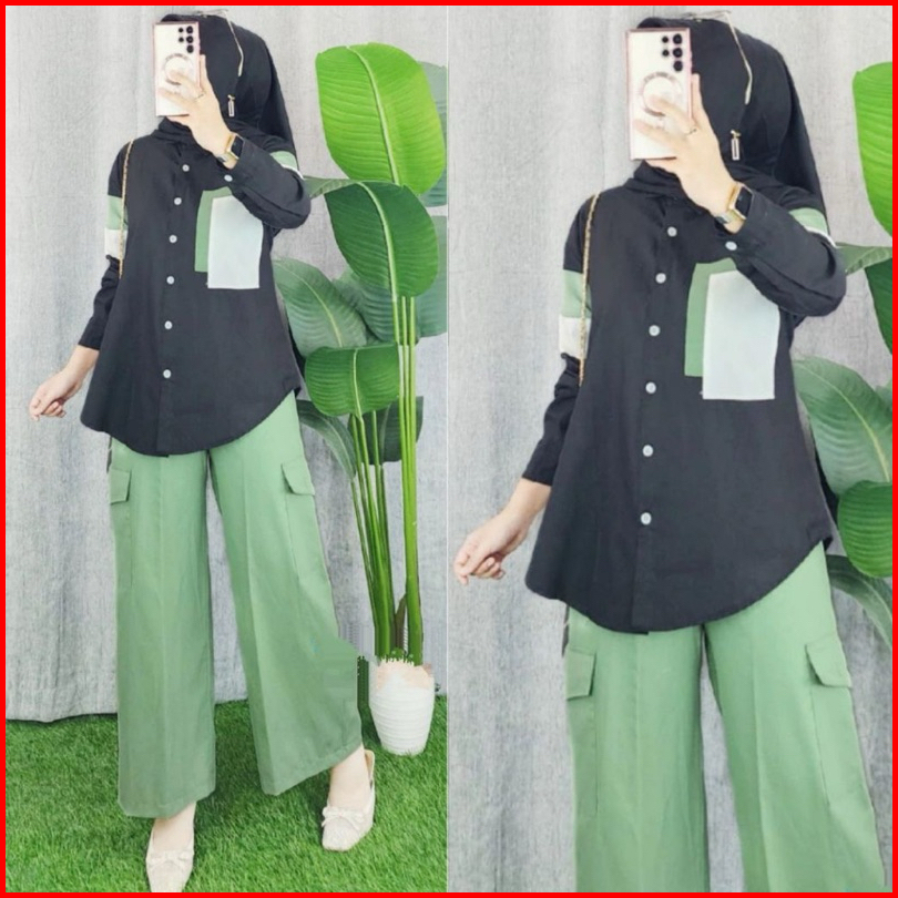 Uma One Set Cargo Crinkel Airflow Bahan Nyaman
