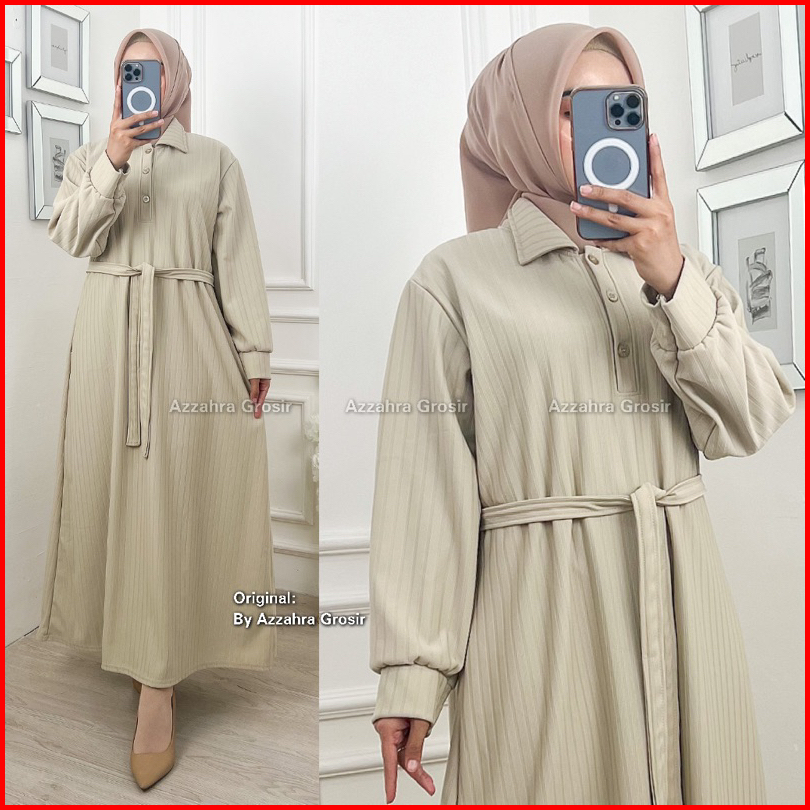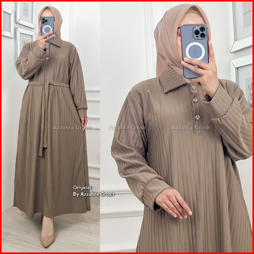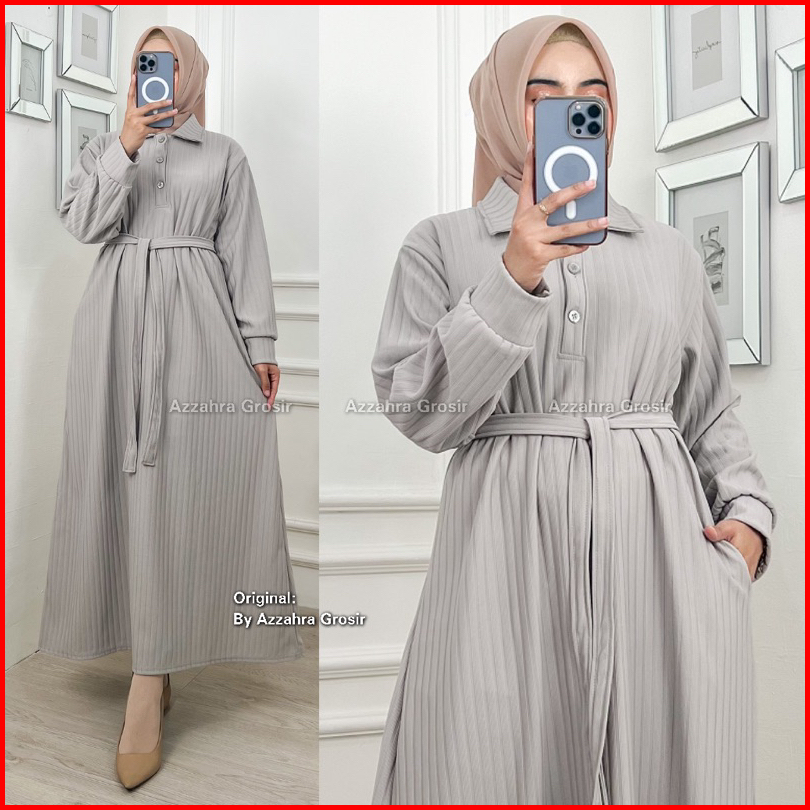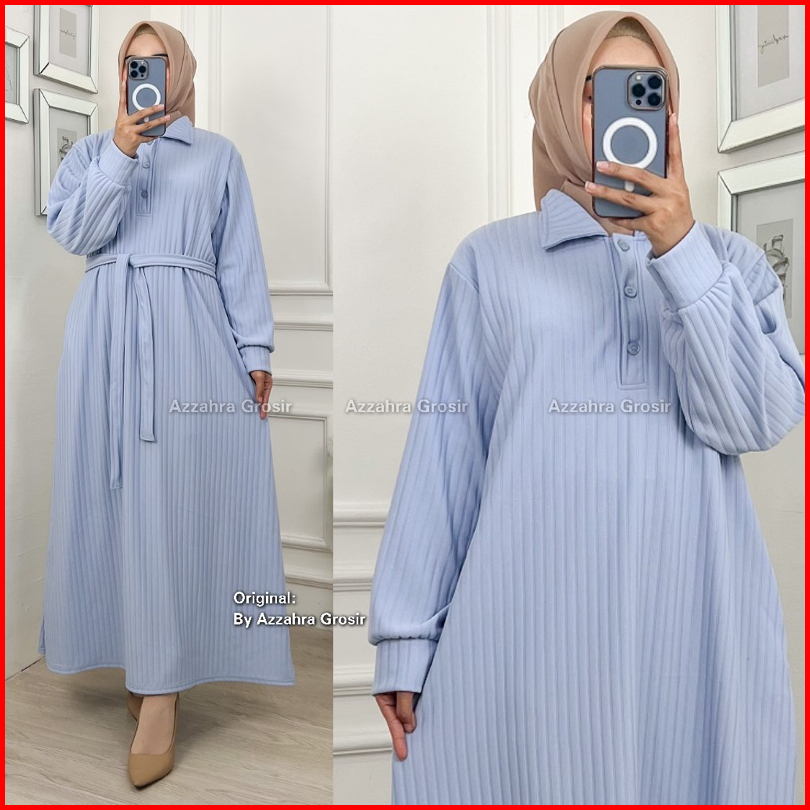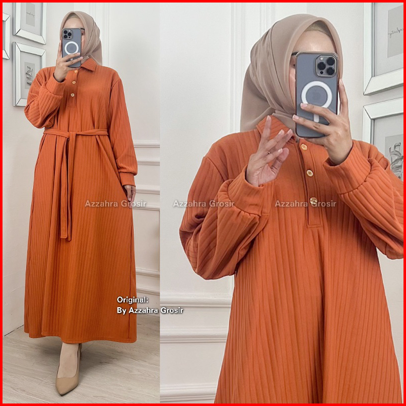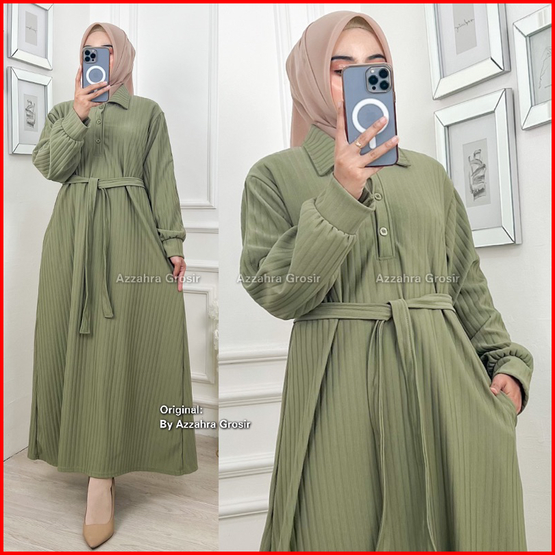 Am - Kirana Dress Gamis Oversize Wanita Free Tali Pinggang Knit Hornet Premium 572-7450