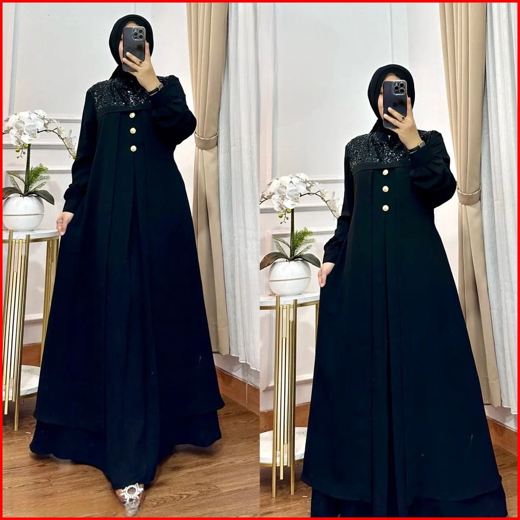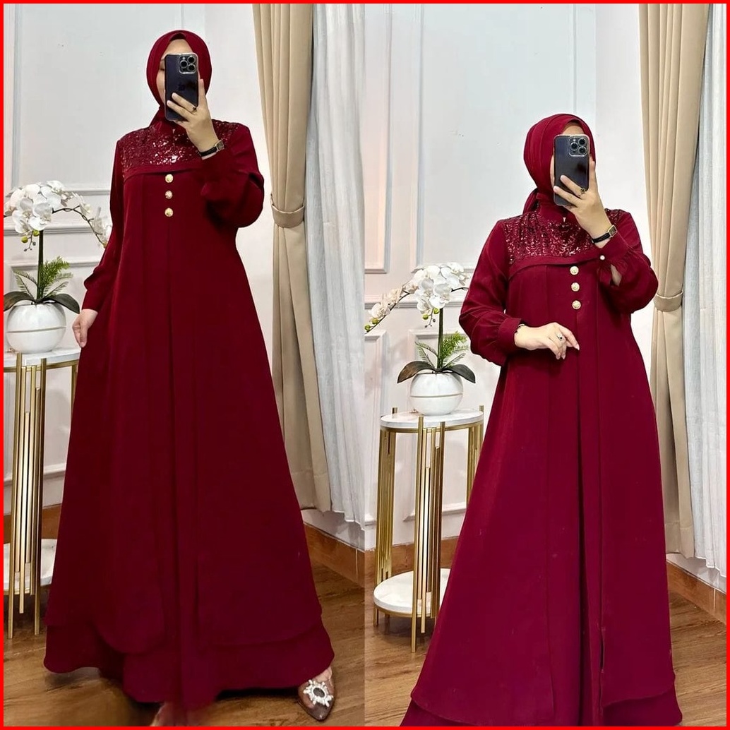 Vallina Outfit - Denara Maxy Dress Layering Full Cerutty Babydoll Gamis Wanita Muslim Modern Pesta Kondangan M - Xl