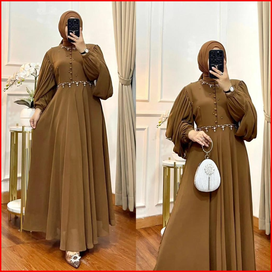 R.a - Gaveena Maxy Wanita Muslim Modern Kekinian Ceruty Babydoll Full Puring Ootd Gamis Kondangan Fashion Terlaris