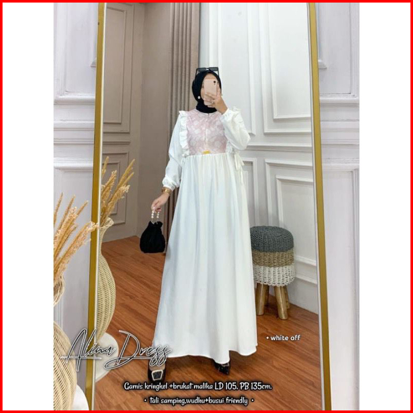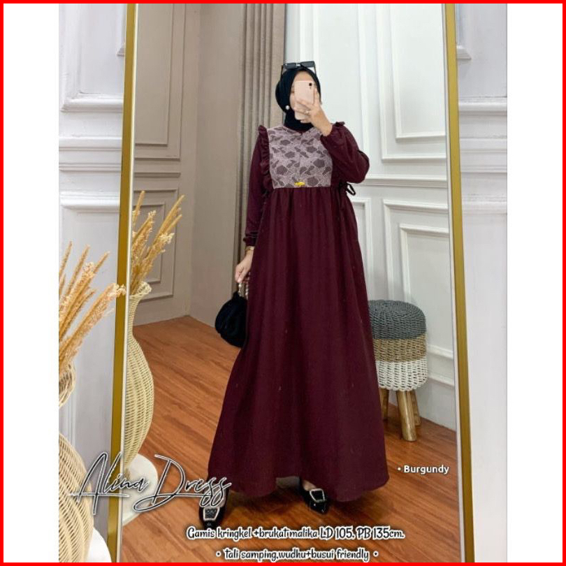 Alina Dress Maxy Burkat Cringkel Airflow Gamis Pesta Burkat Random