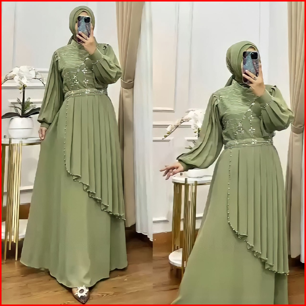 Vallina Outfit - Safira Dress Maxy Pearl Brukat Layering Gamis Cerutty Babydoll Pesta Kondangan Lebaran Premium
