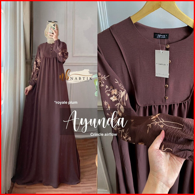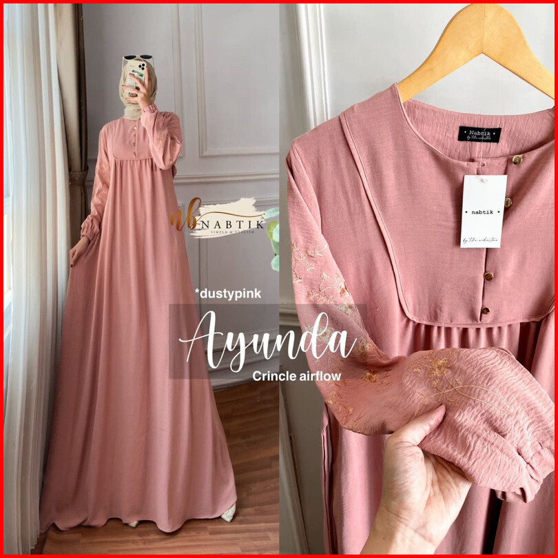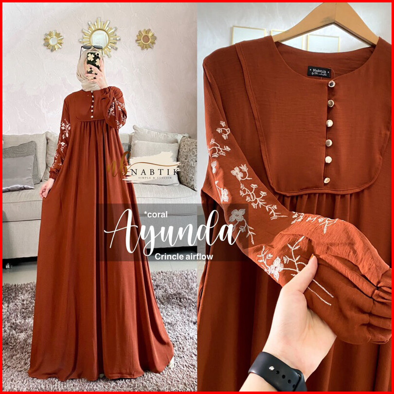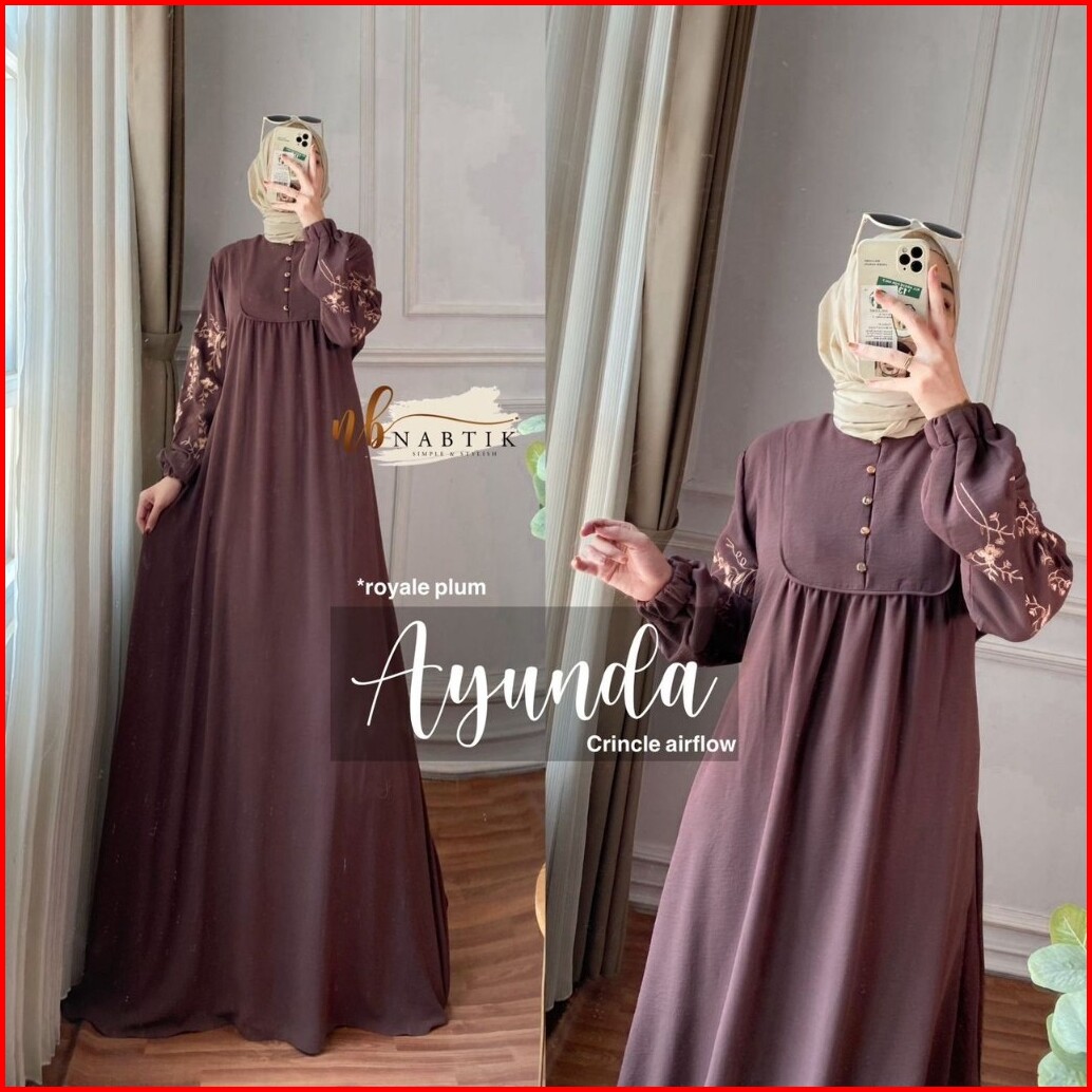 Ayunda Dress Bordir Gamis Wanita Muslimah Bahan Crinkle Airflow