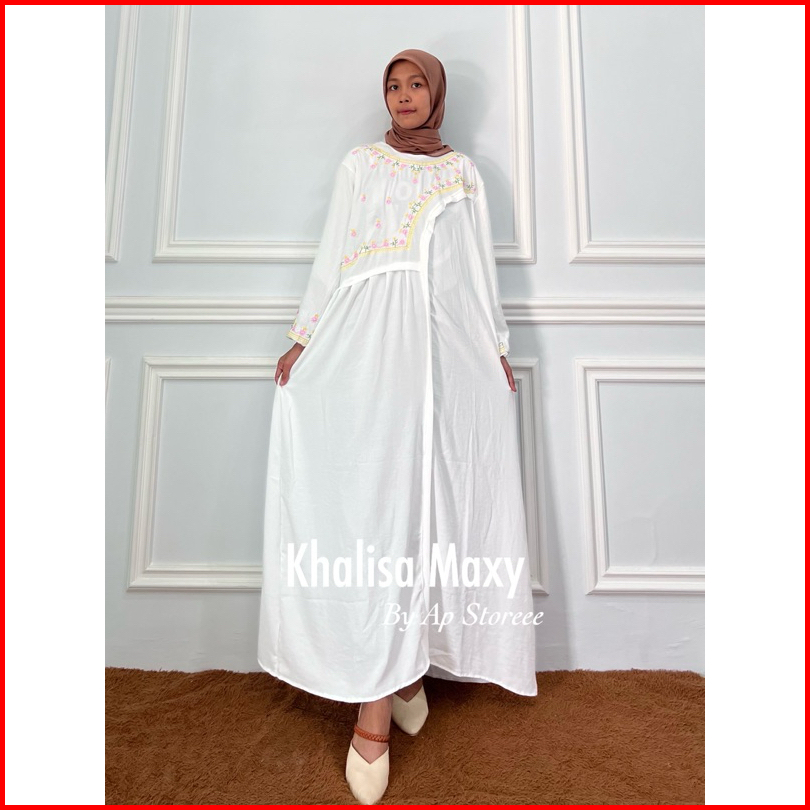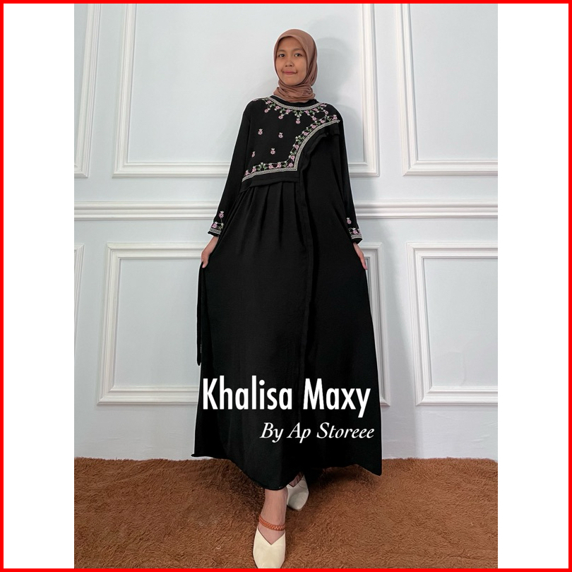 Khalisa Bordir Dress L Ld 110 Xxl Ld 130 Jumbo Maxy Cringkel Airflow Gamis Bordir Asli