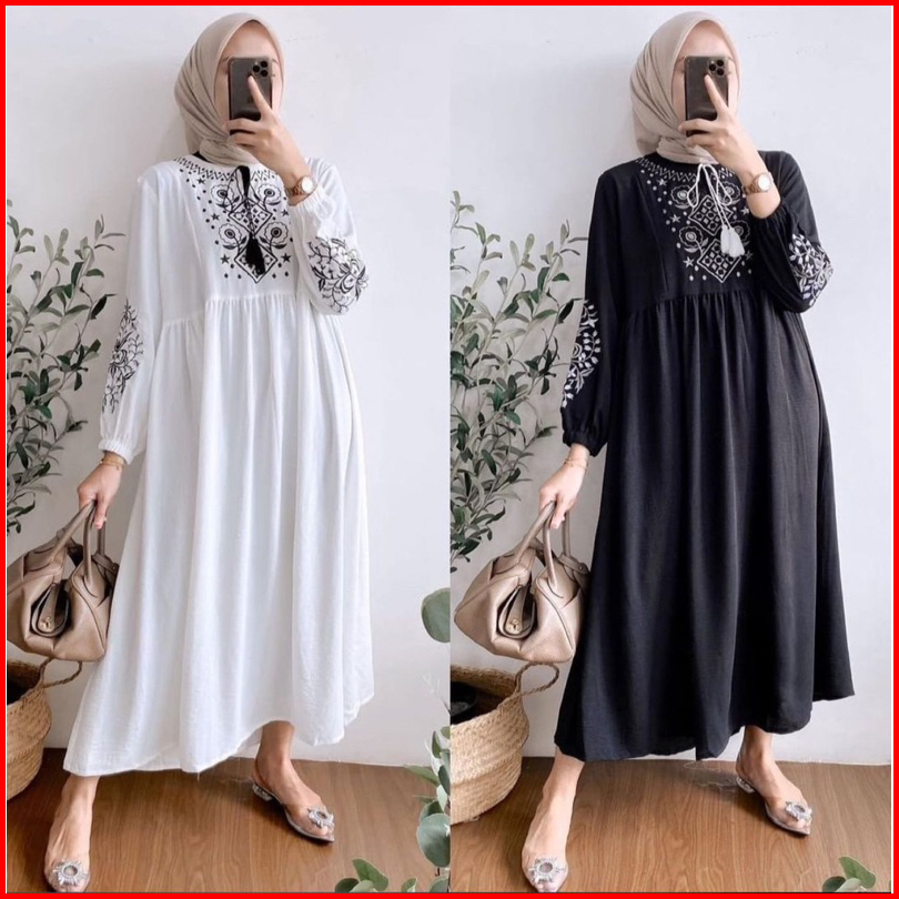 Dzivana Dress Maxy Cringkel Airflow Gamis Bordir Asli