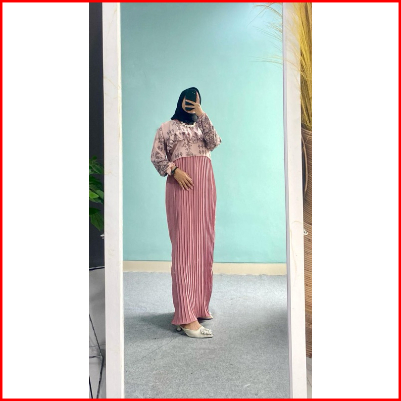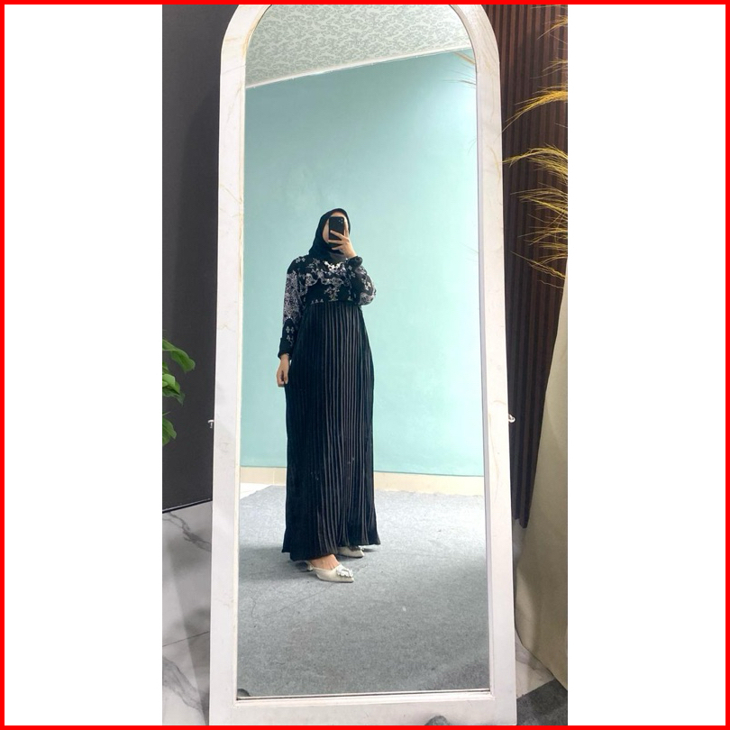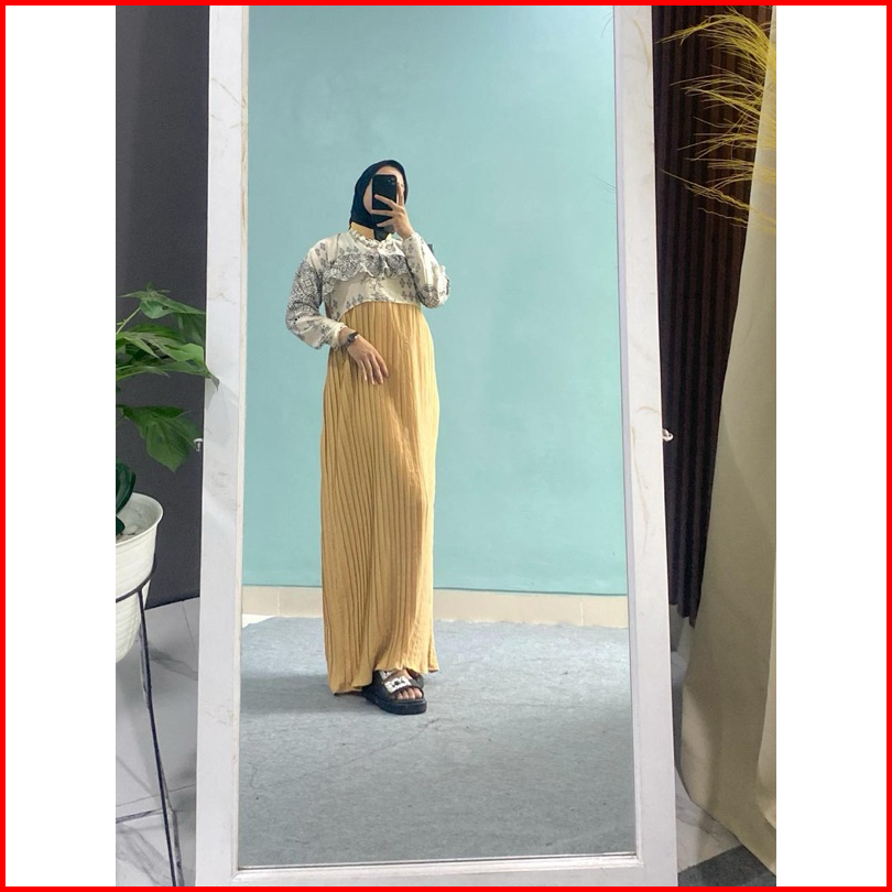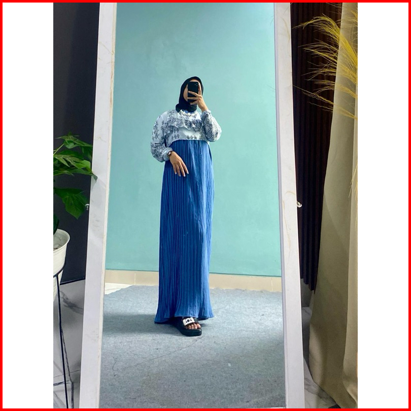 Syafika Combi Gamis Maxi Dress Lebaran Crinkle Airflow Motif
